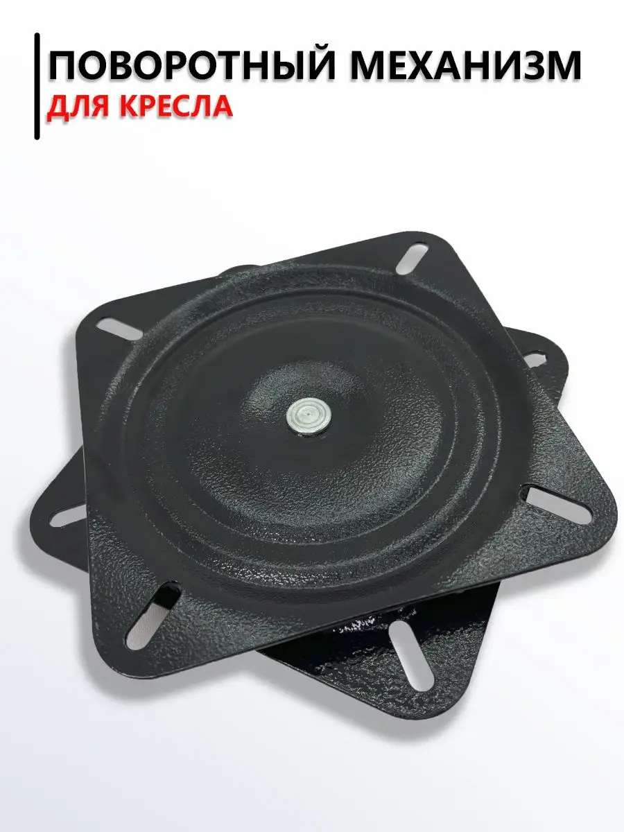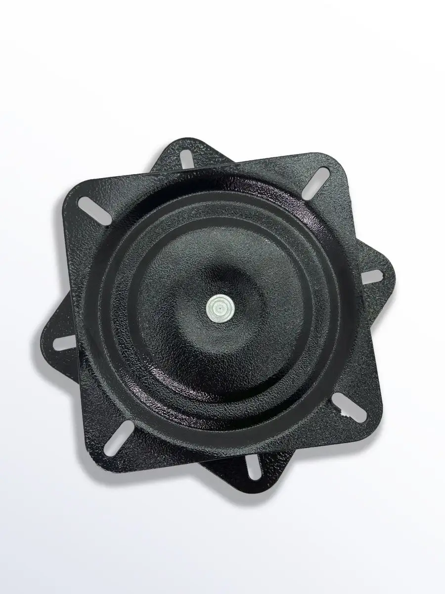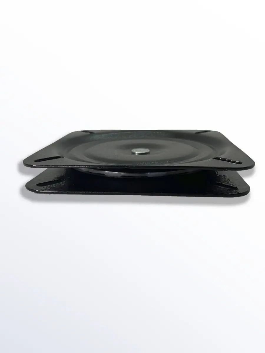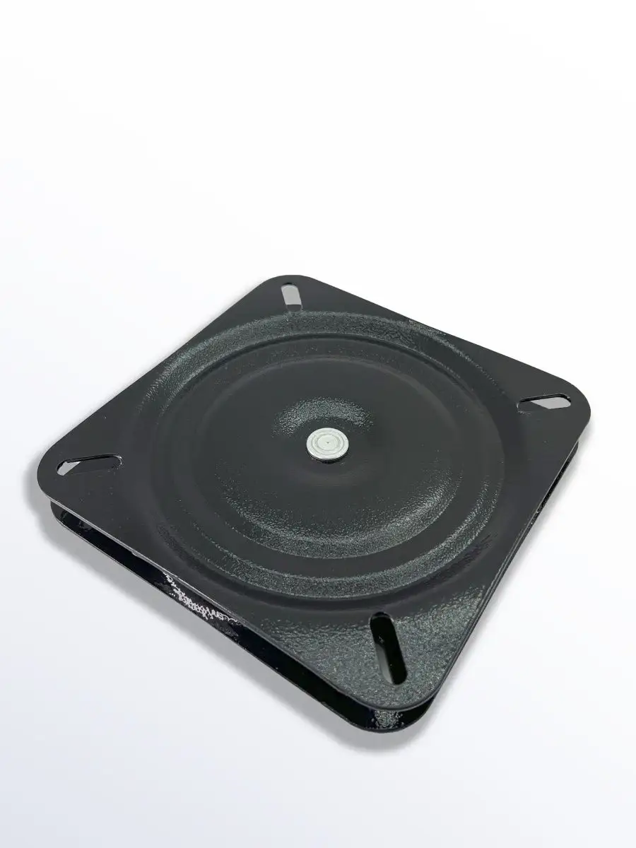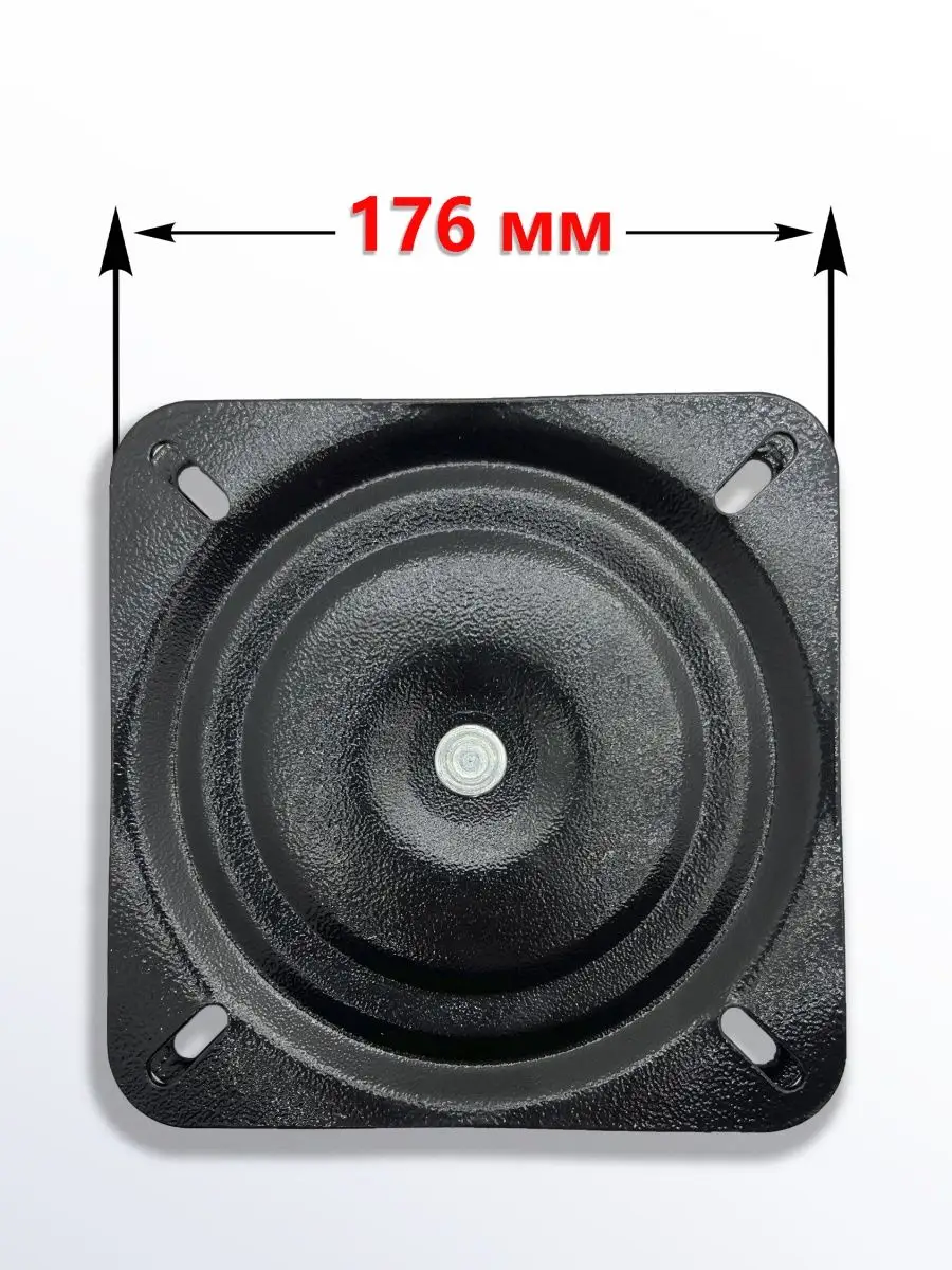 Поворотная площадка 160х160 мм. с двумя подшипниками. Материал - Сталь 2,5 мм. Цвет покрытия - черный. Допустимая вертикальная нагрузка 150 кг. Поворотная платформа позволяет вращаться креслу на 360 градусов. Одной поверхностью поворотная платформа крепиться на основании сиденья кресла, другой на любую ровную поверхность. Используется для поворотных кресел, часто применяется для установки поворотных кресел на борт или палубу катера, рыбацкой лодки.