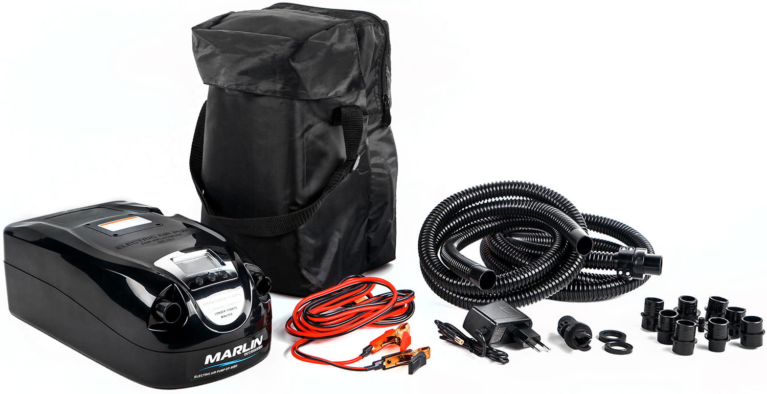 Подходит для накачивания надувных лодок ПВХ (в комплекте поставки – адаптер под вворачиваемый клапан и 9 переходников под воздушные клапаны различных диаметров).