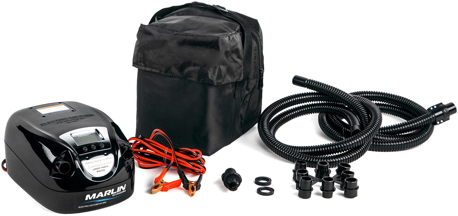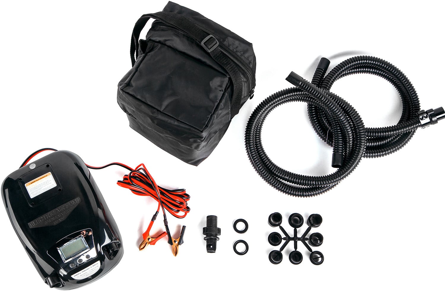 Подходит для накачивания надувных лодок ПВХ (в комплекте поставки – адаптер под вворачиваемый клапан и 9 переходников под воздушные клапаны различных диаметров).