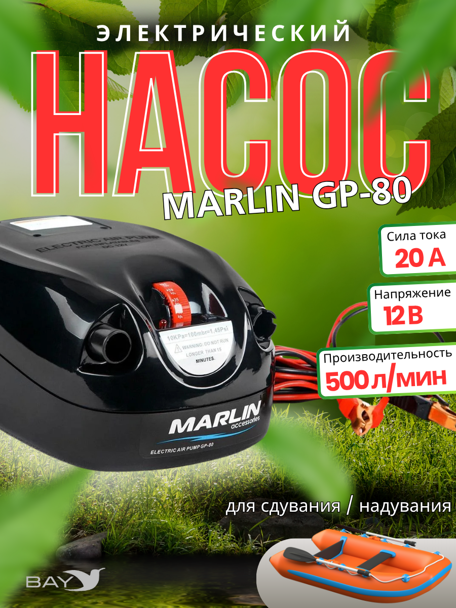 Электрический насос MARLIN GP-80 - это двухступенчатый электрический насос высокого давления, который работает как от автомобильного аккумулятора, так и от компактного переносного АКБ с ёмкостью 12V 7AH.
