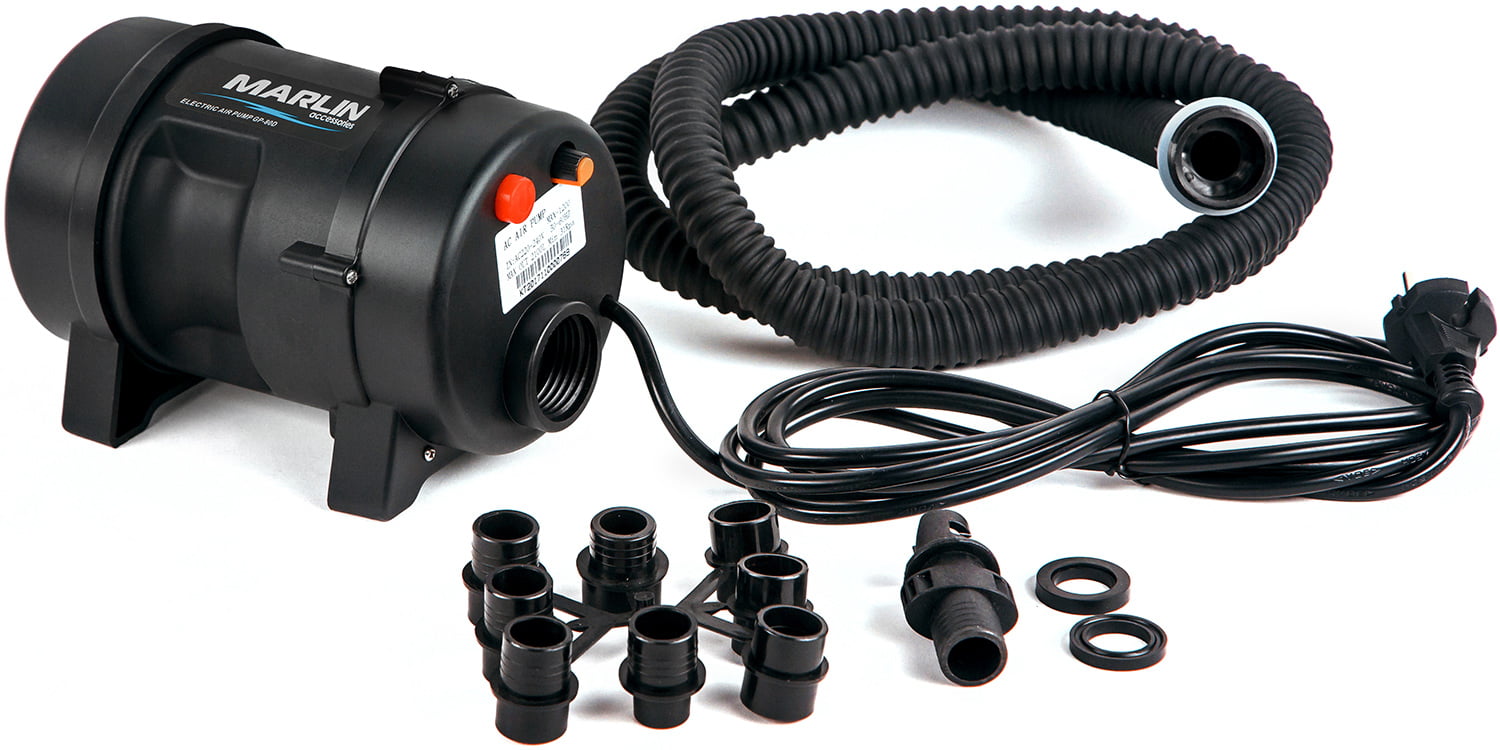 Предназначен для накачивания надувных лодок ПВХ (в комплекте поставки – адаптер под вворачиваемый клапан и 9 переходников под воздушные клапаны различных диаметров).