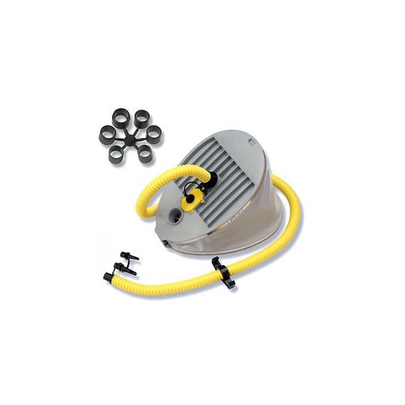 Насос ножной (лягушка) Браво 9 - это ножной насос для наполнения воздухом надувных аттракционов, надувных лодок или спасательных плотов и позволяет не затрачивать много усилий при сборке лодки. Ножной насос Браво 9 с двумя камерами (1,5 литра и 6,5 литров) и возможностью создавать повышенное давление (до 1000 мБар). Опорные поверхности изготовлены из прочного ребристого пластика, а все металлические детали из нержавеющей стали.