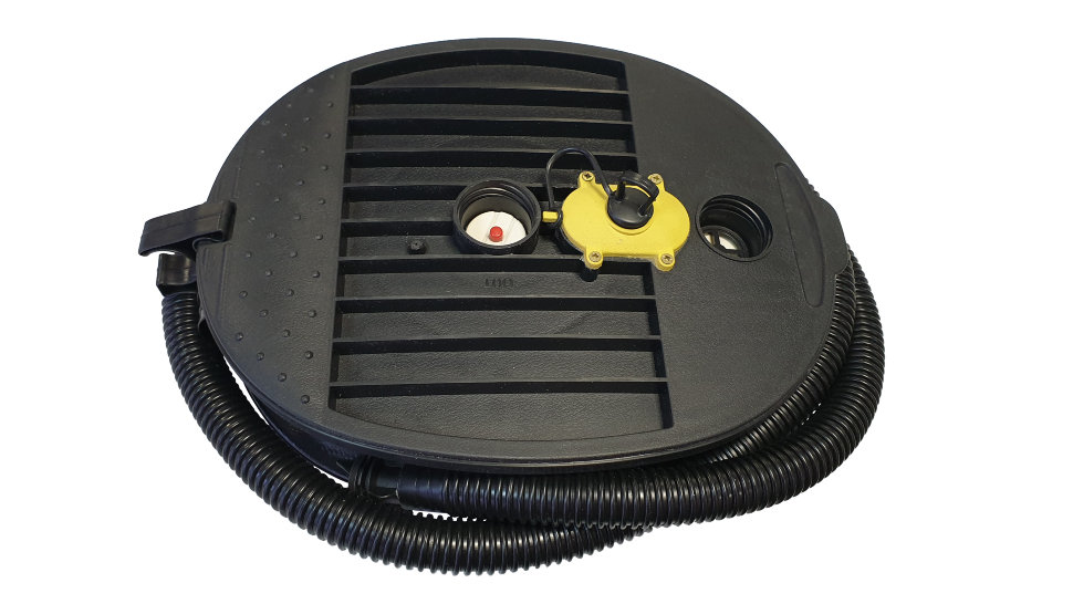 Гофрированный шланг прочен и устойчив к деформации скручивания. Стандартный цанговый переходник оснащен уплотнительным кольцом. Работа насоса предусмотрена с открытым выпускным шлангом.