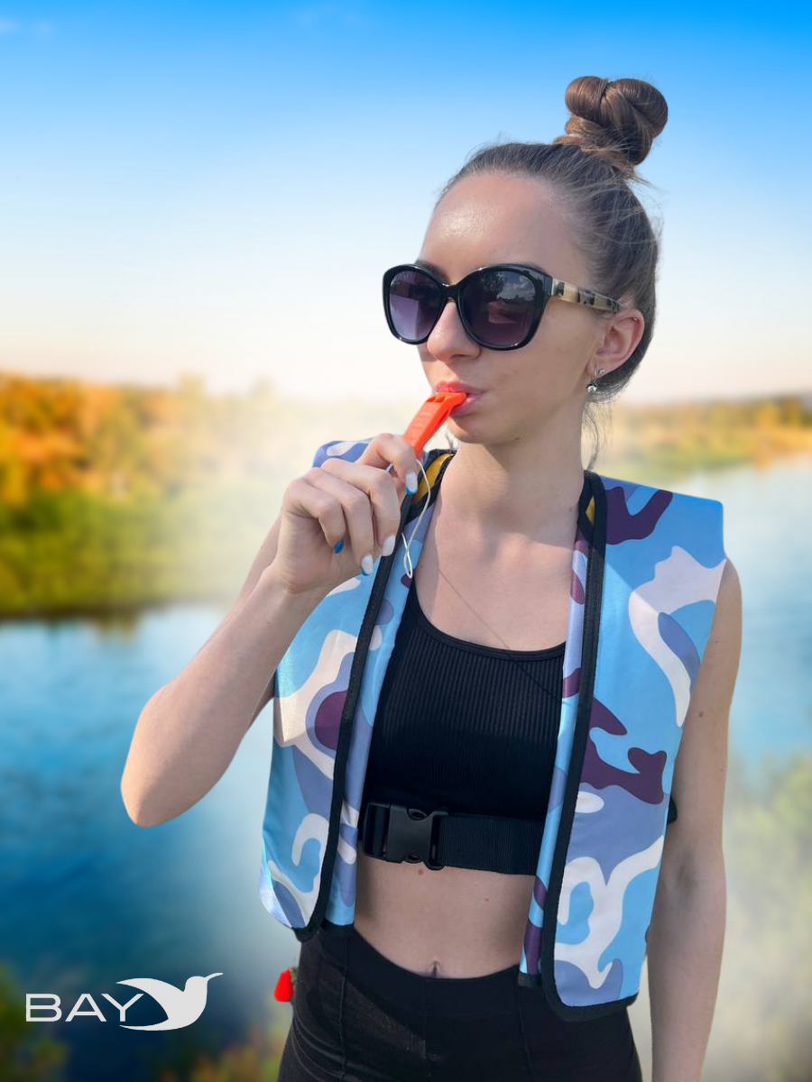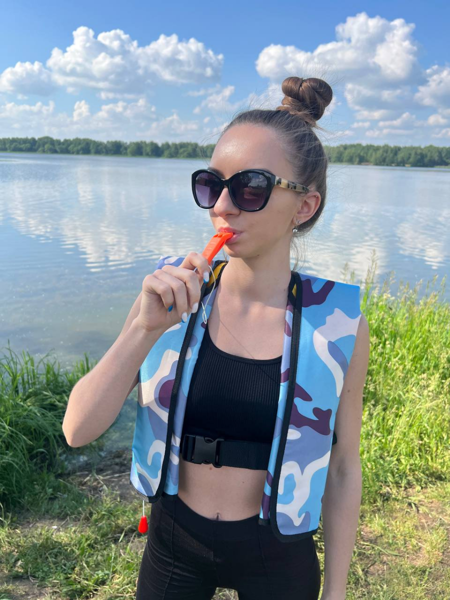 Жилет самонадувающийся спасательный LifeJacket камуфляж голубой