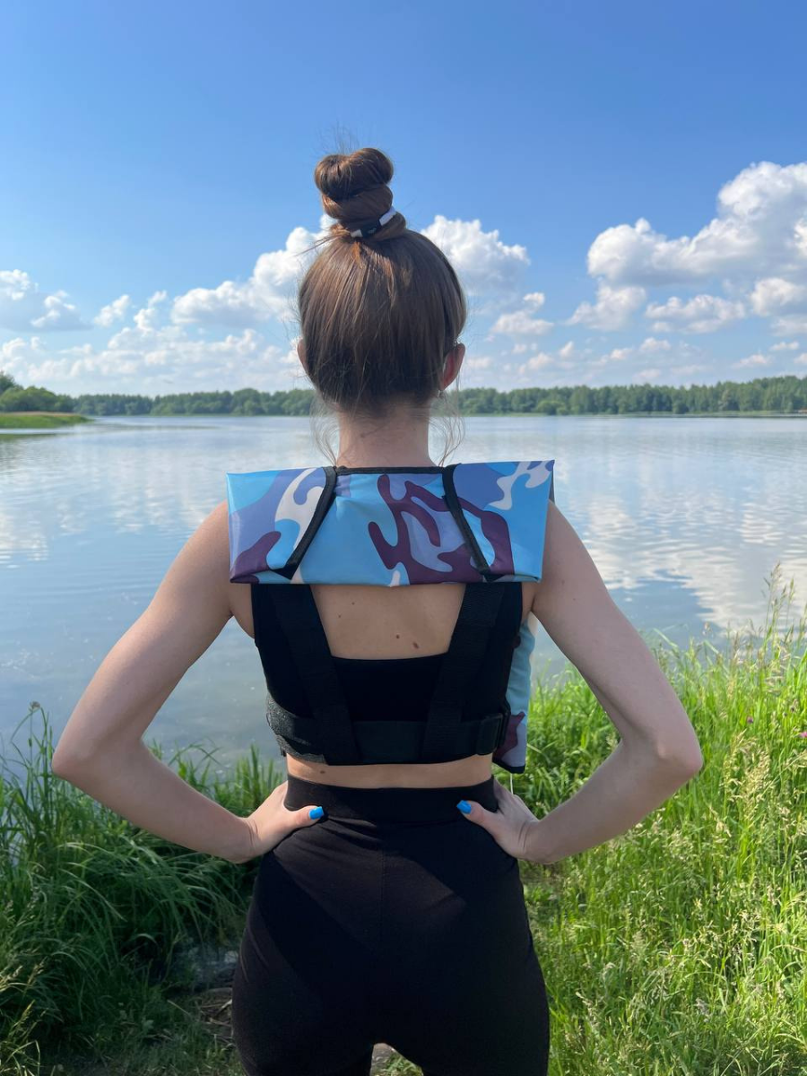 В области шеи предусмотрен специальный 3D крой, который позволяет настроить жилет так, что он не будет касаться шеи. Это дает легкость и свободу движениям, без натирания и тяжести.