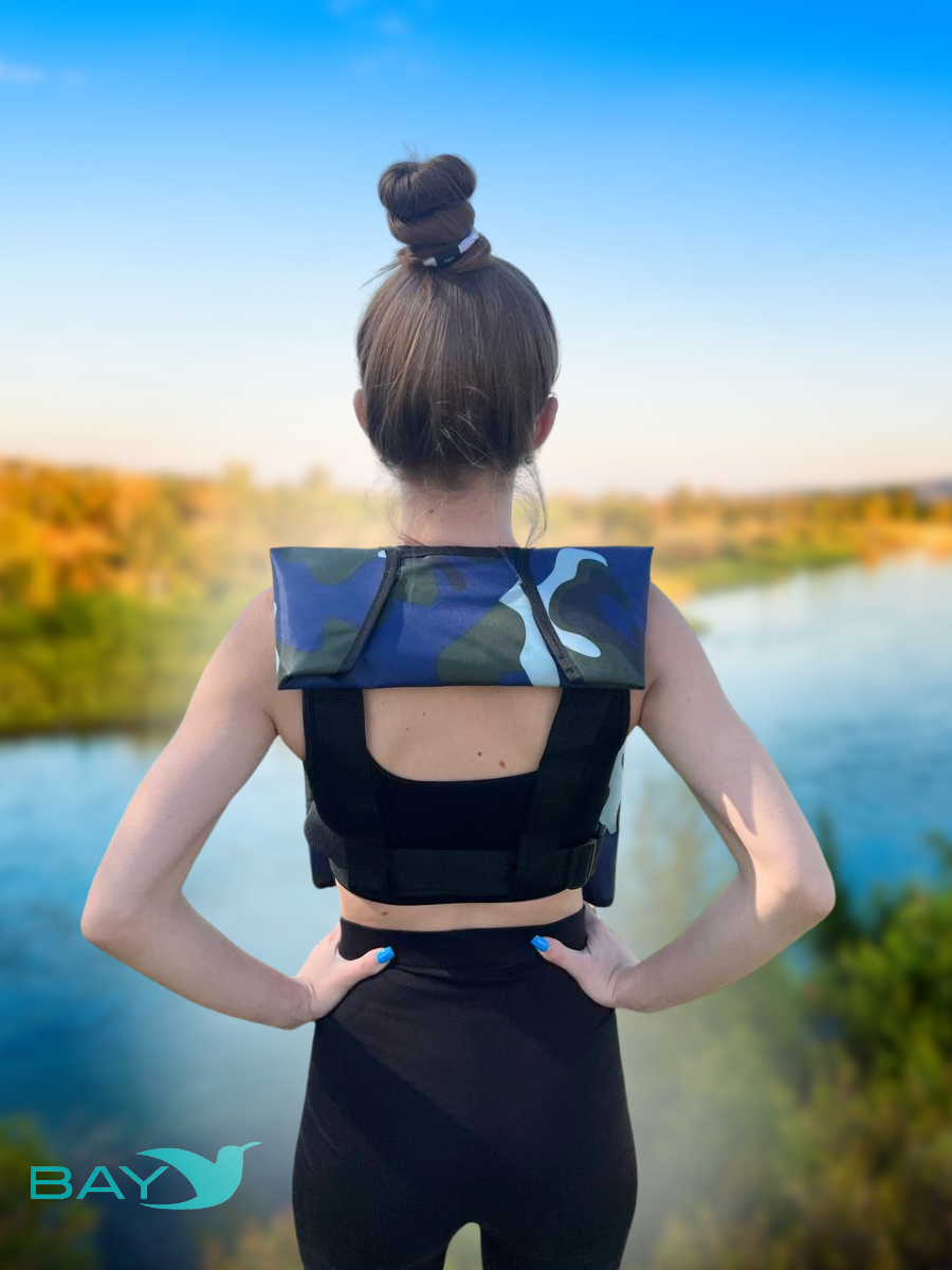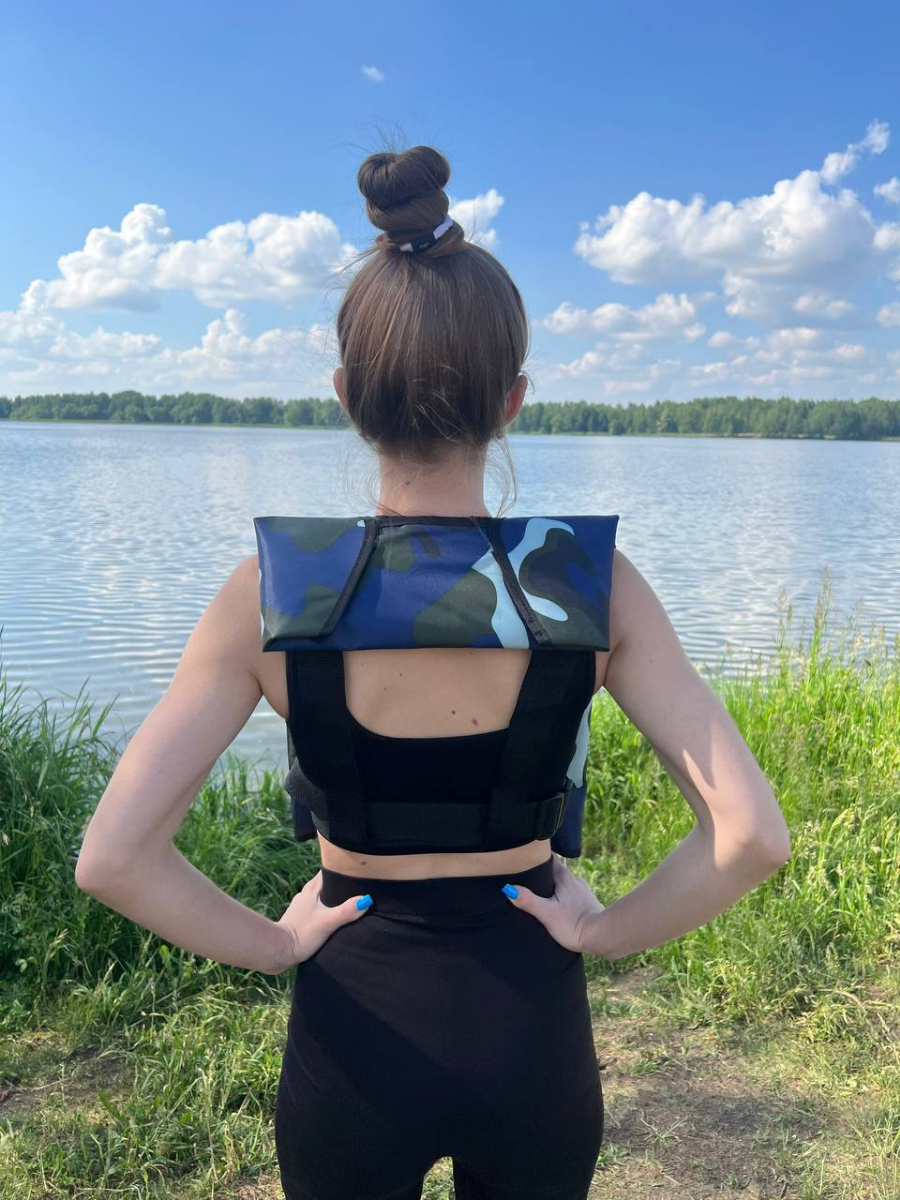 В области шеи предусмотрен специальный 3D крой, который позволяет настроить жилет так, что он не будет касаться шеи. Это дает легкость и свободу движениям, без натирания и тяжести.