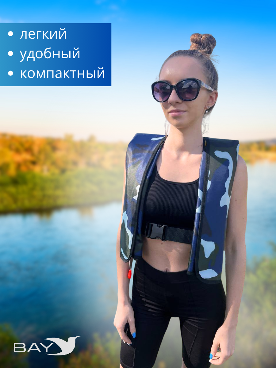 Жилет самонадувающийся спасательный LifeJacket камуфляж синий