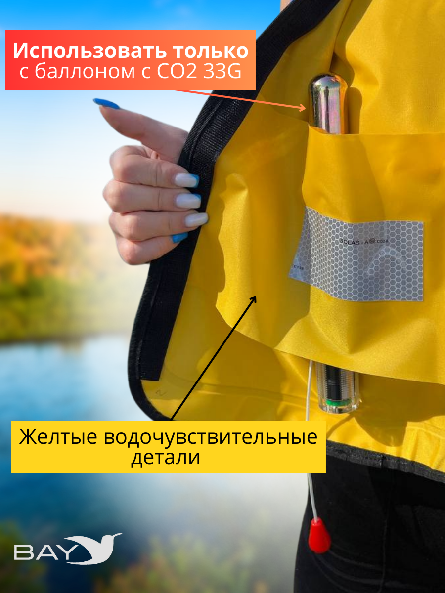 В комплекте с жилетом идет баллон, водочувствительный датчик и инструкция.