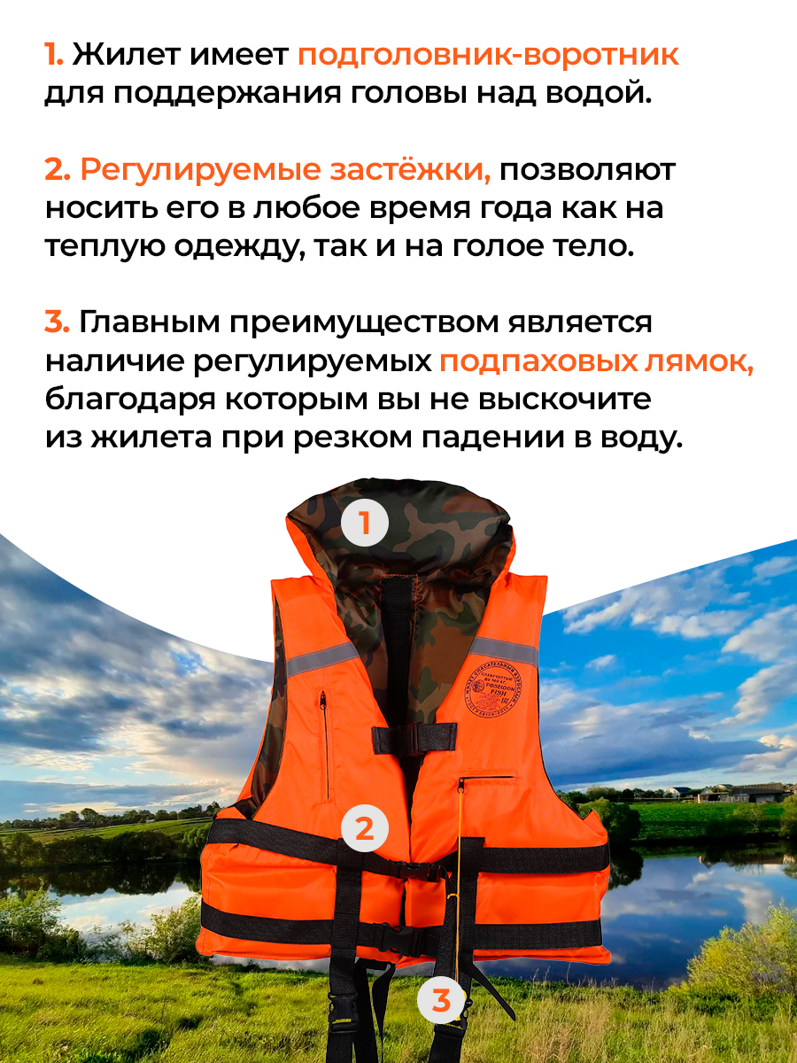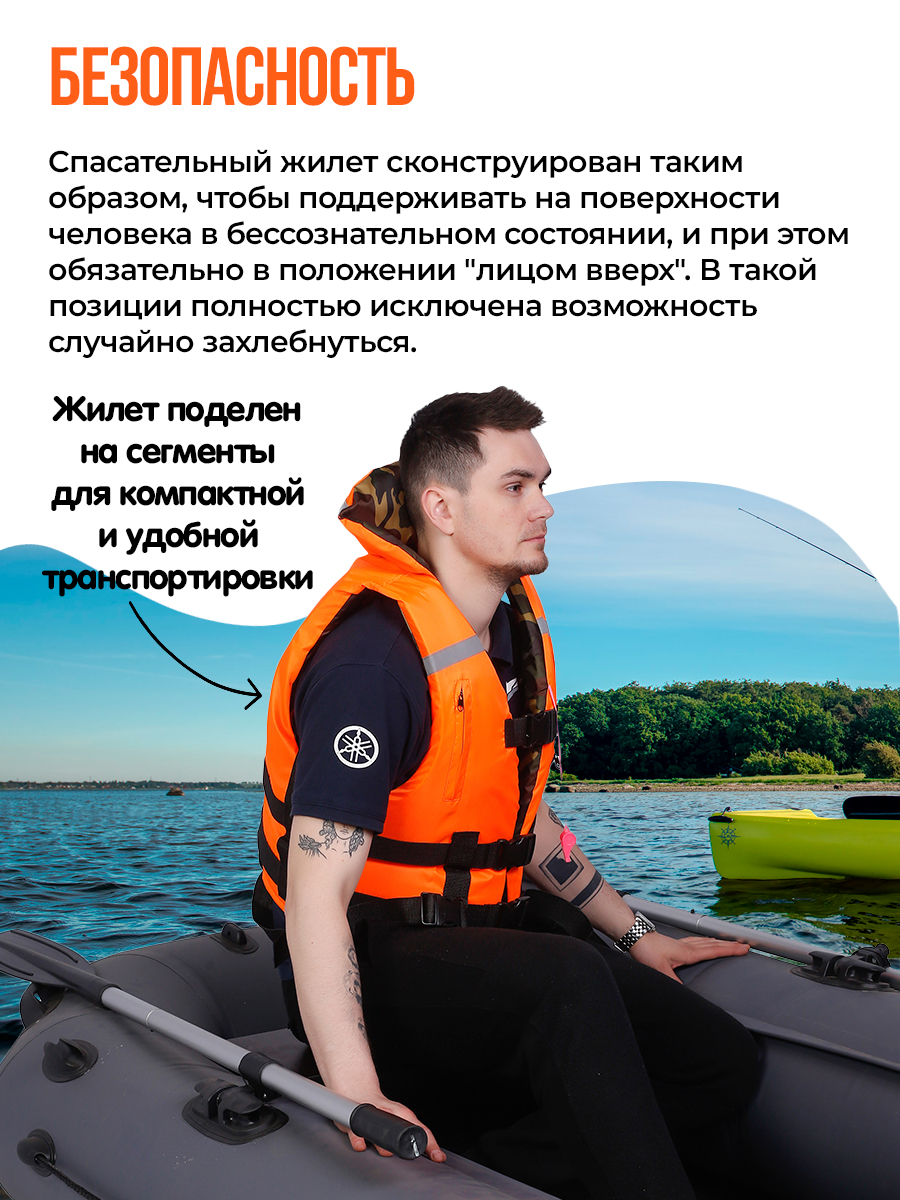 ✔Жилет с высоким подголовником, который хорошо держит голову человека на плаву и обладает достаточной гибкостью для складывания при транспортировке.