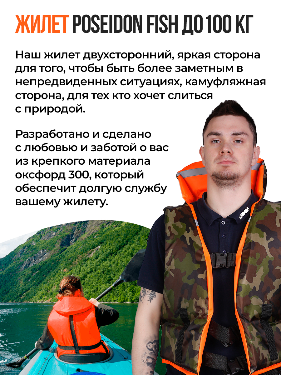 Жилет спасательный двухсторонний Poseidon Fish до 100 кг