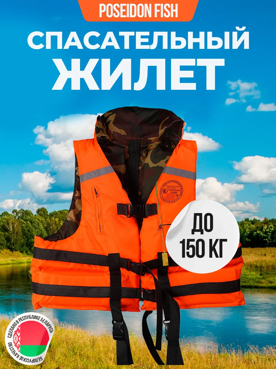 Жилет спасательный двухсторонний Poseidon Fish до 150 кг