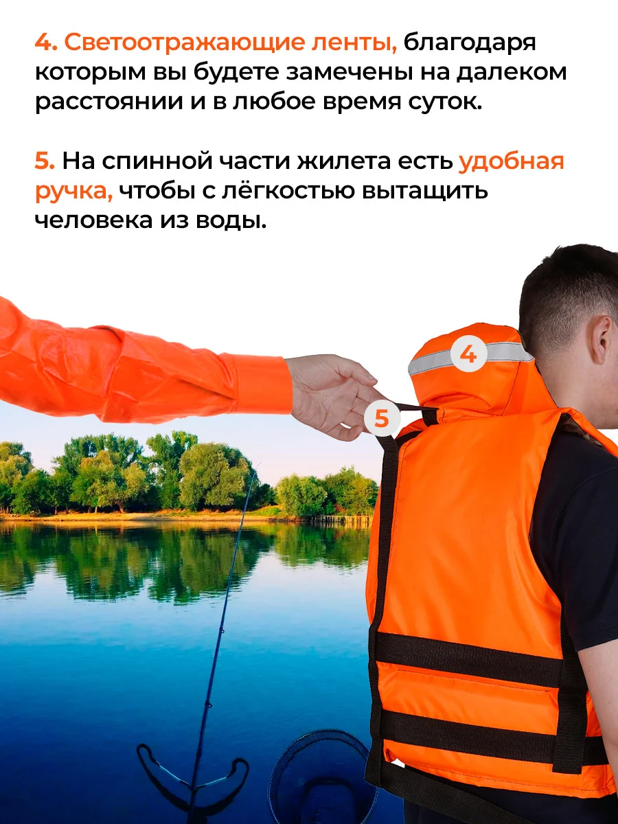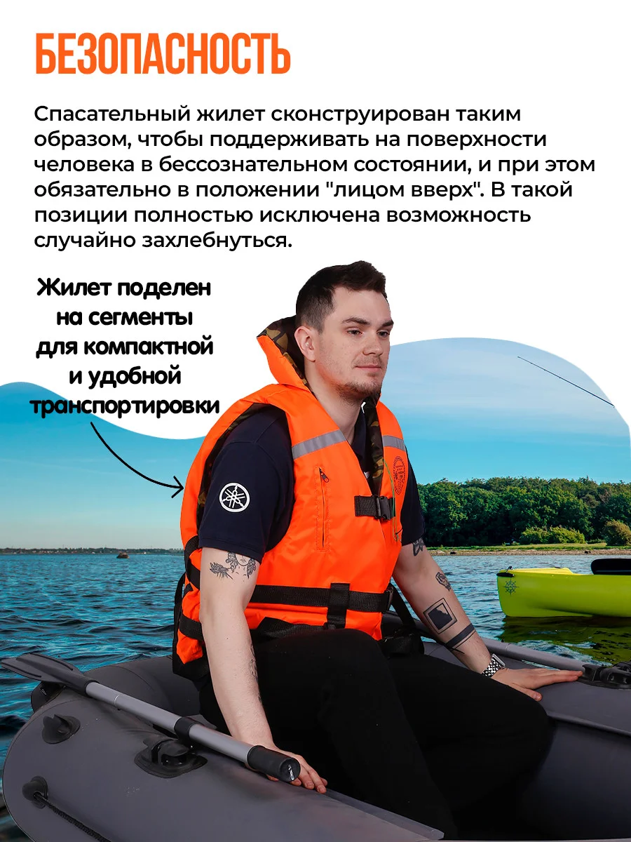 ✔Жилет с высоким подголовником, который хорошо держит голову человека на плаву и обладает достаточной гибкостью для складывания при транспортировке.
