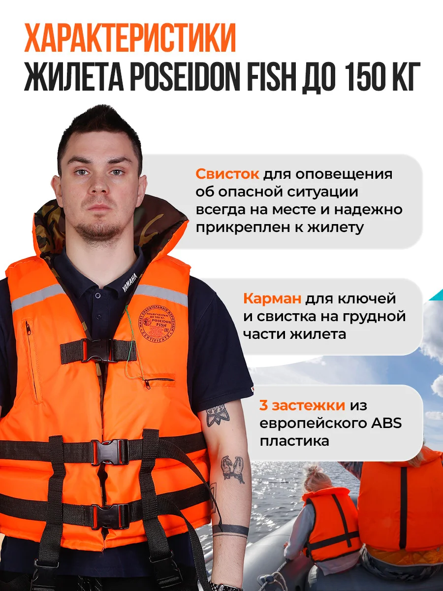 Спасательный жилет Poseidon Fish предназначается для обеспечения безопасности на воде во время рыбалки, тренировок и соревнованиях в водных видах спорта, туристических водных походах.