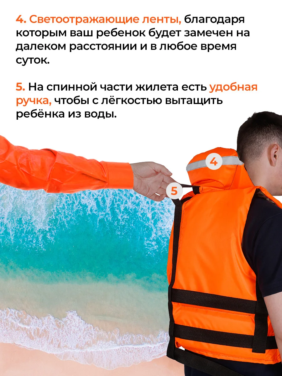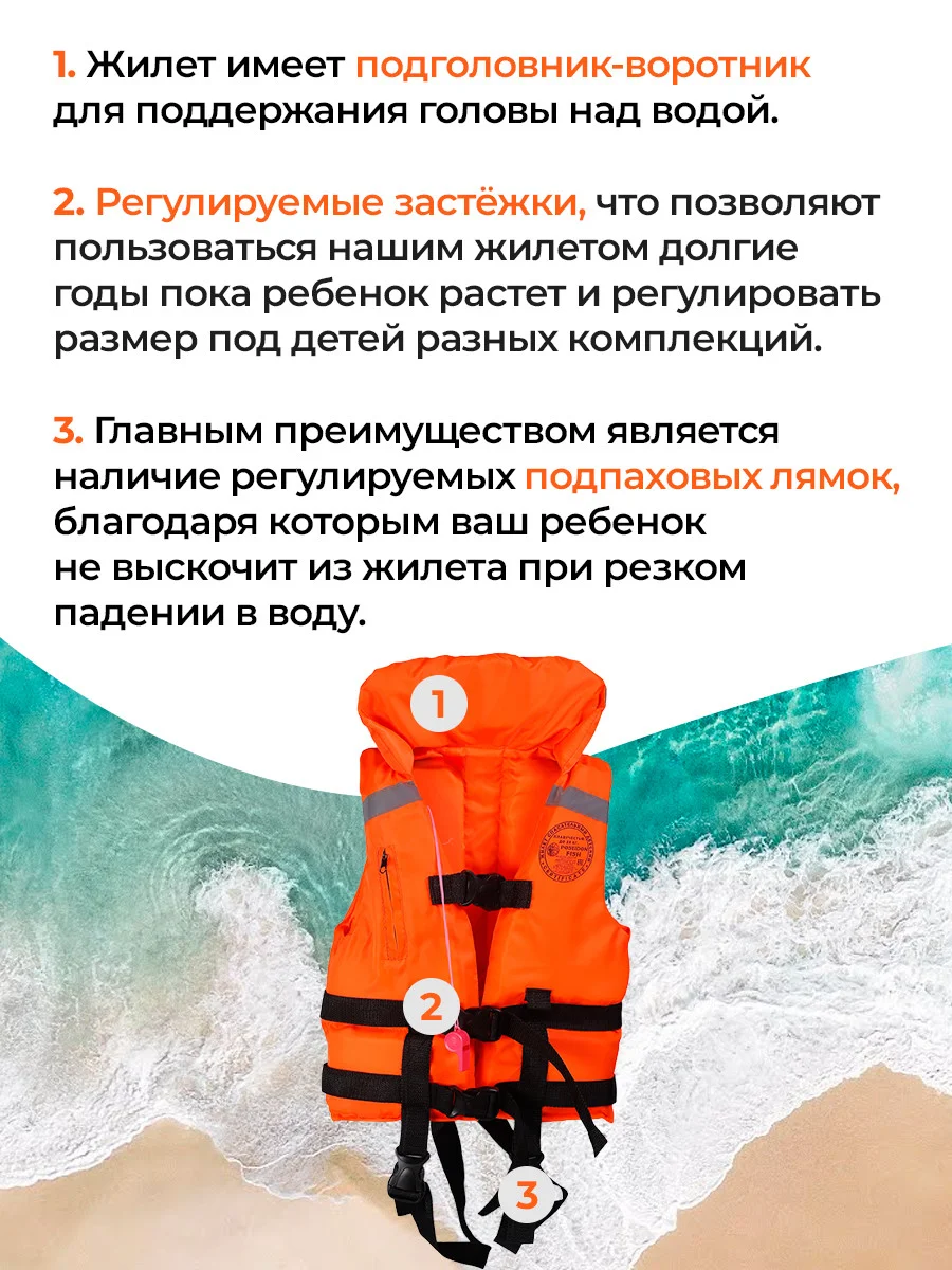 ✔Жилет с высоким подголовником, который хорошо держит голову человека на плаву и обладает достаточной гибкостью для складывания при транспортировке.