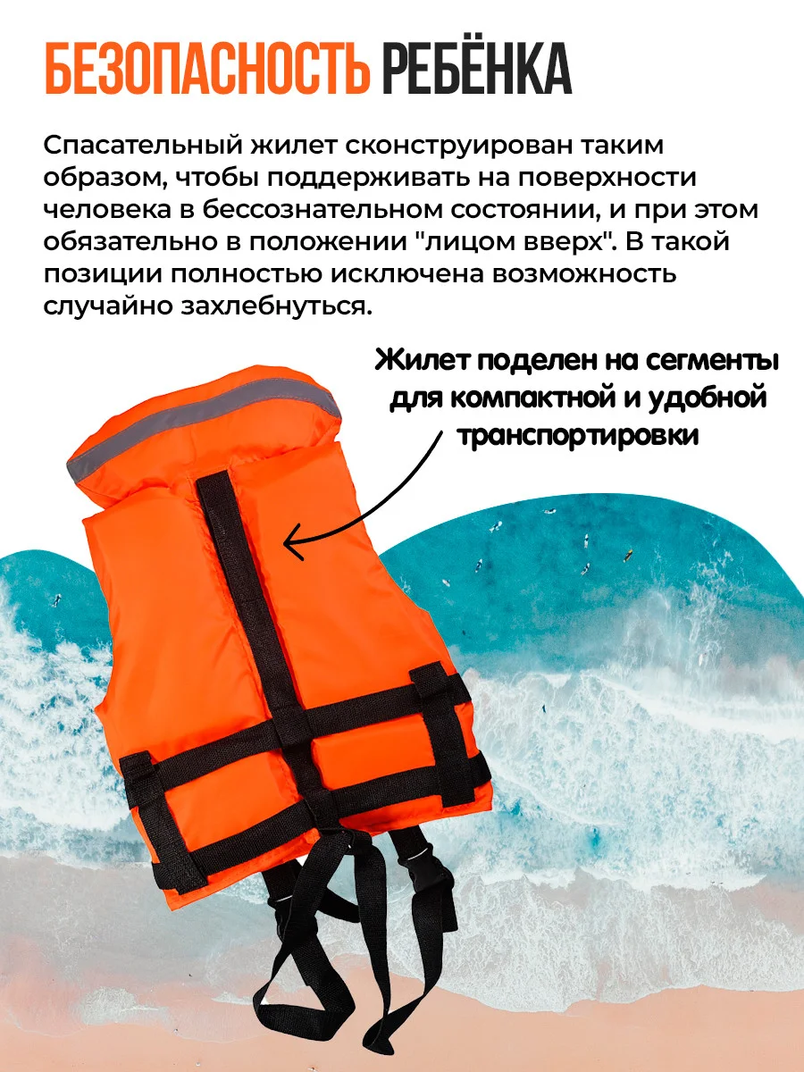 Спасательный жилет сконструирован таким образом, чтобы поддерживать на поверхности человека в бессознательном состоянии, и при этом обязательно в положении «лицом вверх». В такой позиции полностью исключена возможность случайно захлебнуться.