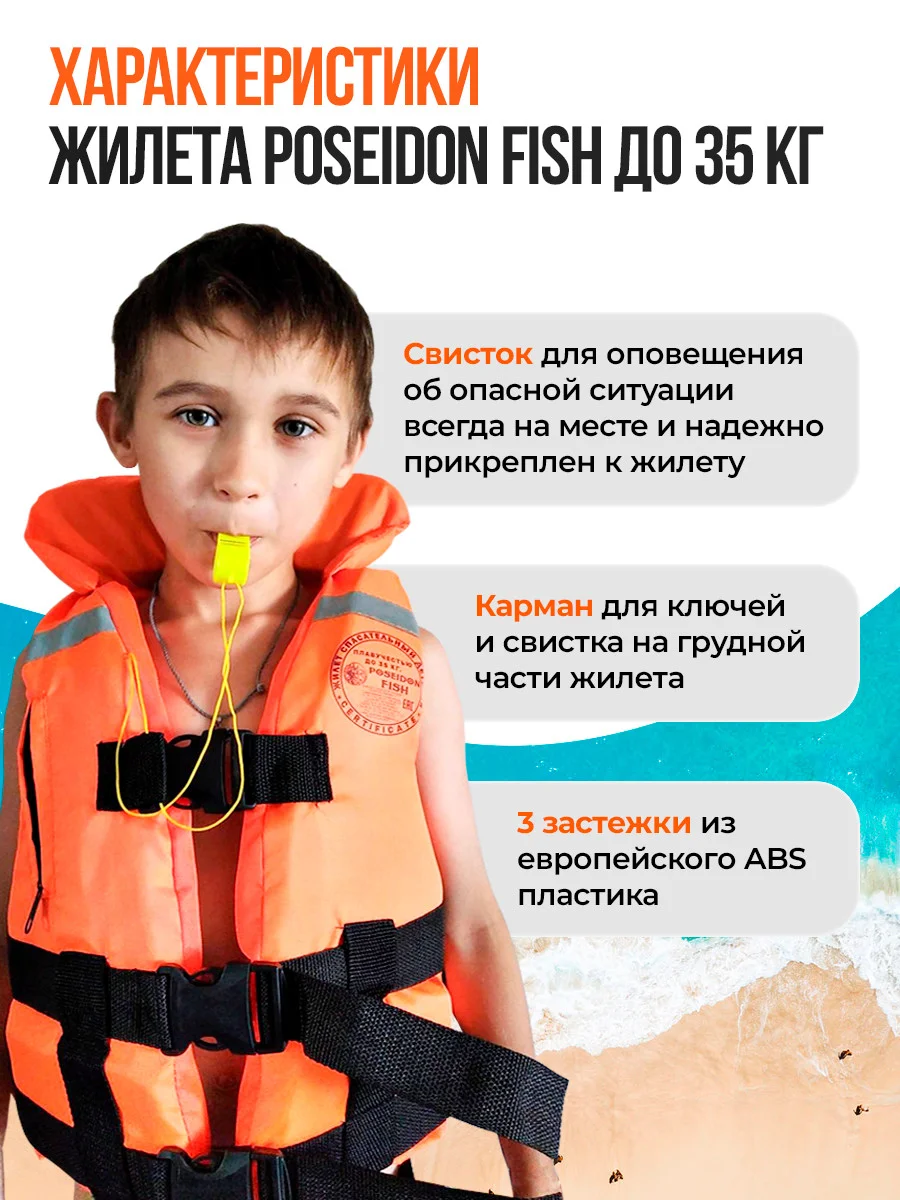 Жилет спасательный двухсторонний Poseidon Fish до 35 кг