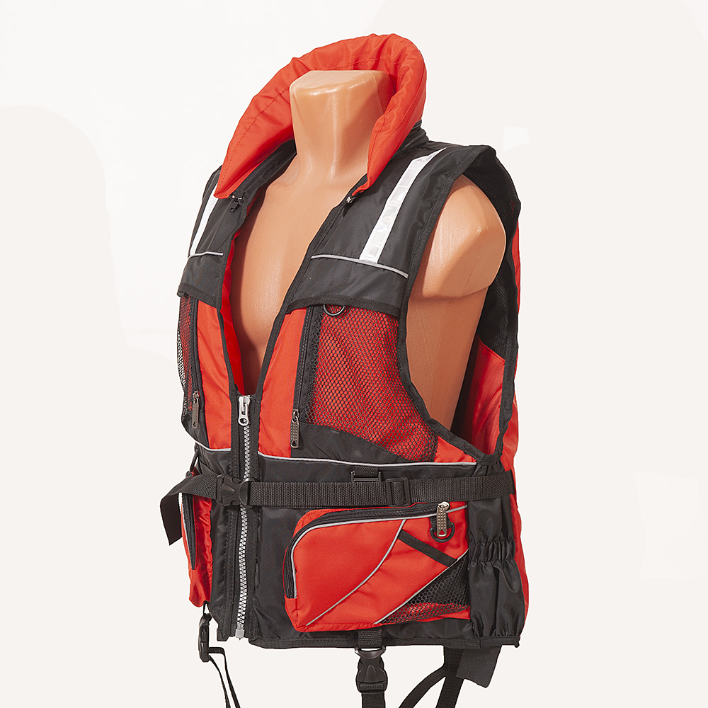 Спасательный жилет с размерным рядом до 115 кг дополнительно выполняет задачи разгрузочного жилета и изготовлен по ГОСТ Р 58108-2019. Жилет премиум-сегмента имеет много красивых и функциональных карманов, а также пластиковых полуколец (для экстрактора, для ключа зажигания и прочих важных предметов), крупную прочную молнию на центральной застежке, небольшой воротник (защищает шею от ветра и холода и увеличивает плавучесть). Паховая стяжка удобно укладывается сзади в сетчатый карман на молнии. На подкладе есть 4 сеточки, позволяющие жилету быстро просыхать, и внутренние стяжки, обеспечивающие лучшую подгонку жилета по размеру. Буквенное обозначение соответствует размерам одежды, но подразумевает возможность одевать жилет поверх другой одежды. Из- за особенностей кроя жилет удобно садится как на мужскую, так и на женскую фигуру. Товар сертифицирован.