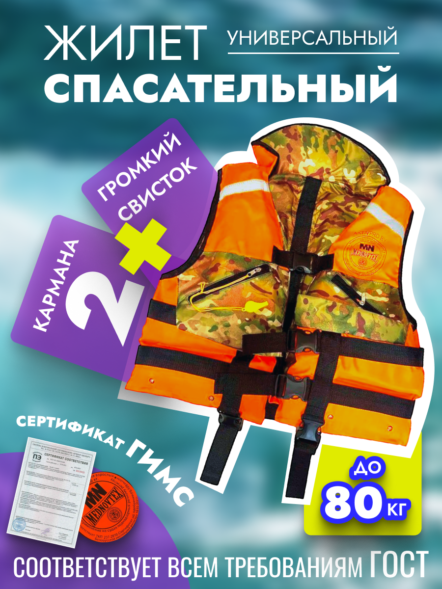 Спасательный жилет для охоты и рыбалки, сшит по требованию ГИМС (ГОСТ 58108-2019), обязательный лодочный аксессуар, обеспечивающий безопасность в маломерных судах. Двусторонний распашной сигнальный жилет для мужчин, женщин и детей. Жилетка обладает высокой плавучестью, чтобы при попадании в воду, перевернуться лицом вверх. Жилет страховочный с карманами для рыбалки сшит из влагонепроницаемой ткани Оксфорд сигнального ярко-оранжевого и камуфляжного цвета. Наполнитель- эластичный, не впитывающий воду вспененный пенополиэтилен. Объемный поясной карман застегивается на молнию. В вертикальном грудном кармане спрятан свисток спортивный- потайной вход закрыт молнией. Жилет светоотражающий сигнальный для плавания снабжен стропами на фастексах-полуавтоматические пряжки трезубцы надежно фиксируются на туловище. Паховый ремень, грудные ремни регулируют по размеру. Жилет двухсторонний с карманами для лодки заметен в темное время суток.