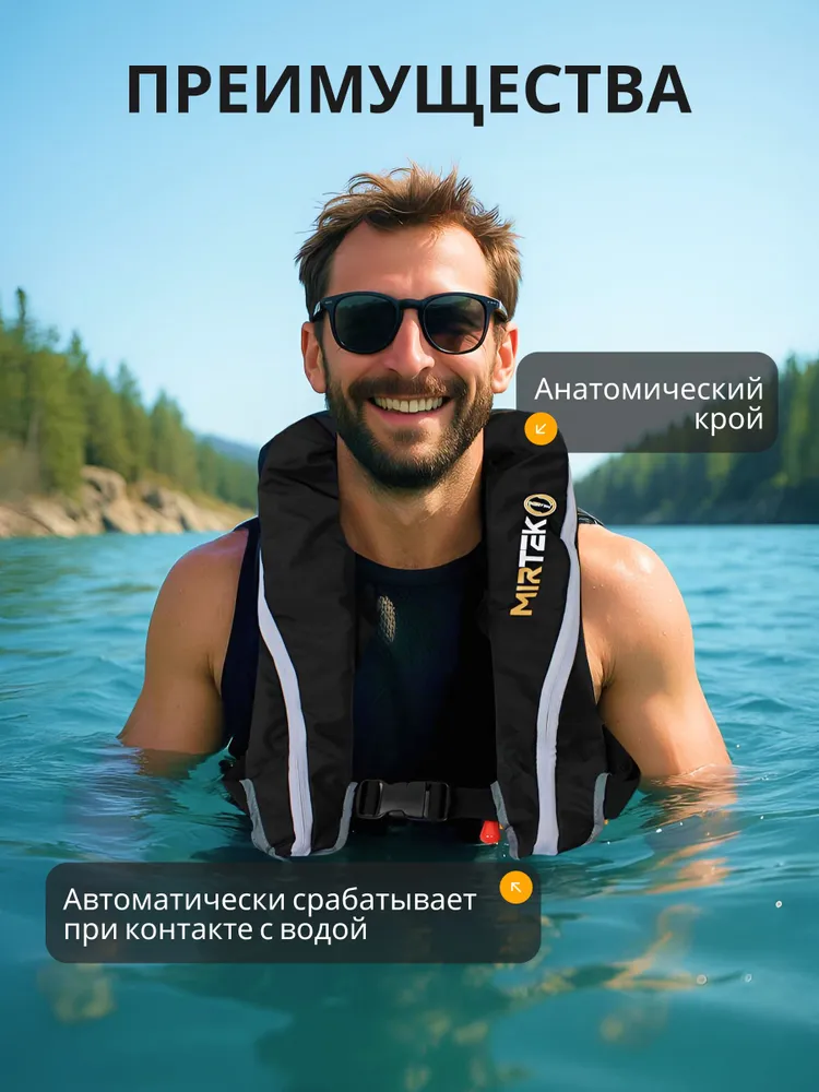 Надувной спасательный жилет Mirtek обеспечивает максимальную безопасность при нахождении на воде. Предназначен для взрослых пользователей весом до 130 кг, он сочетает в себе легкость, комфорт и высокий уровень защиты. Автоматическая система надувания срабатывает при попадании в воду, а ручной режим позволяет активировать жилет в любой момент.
