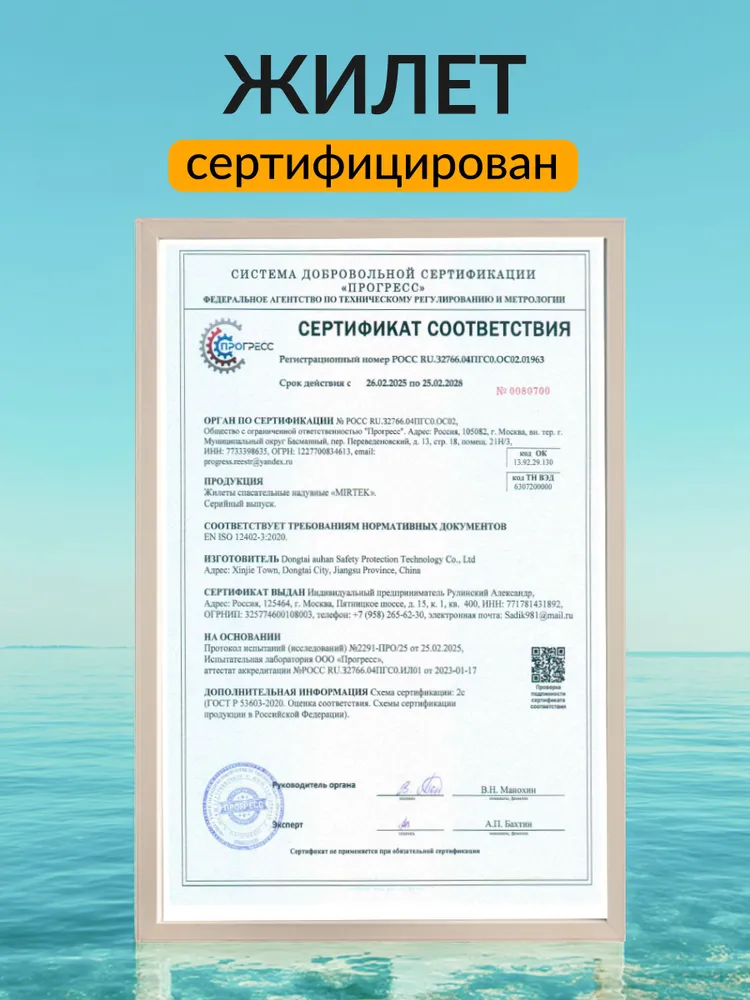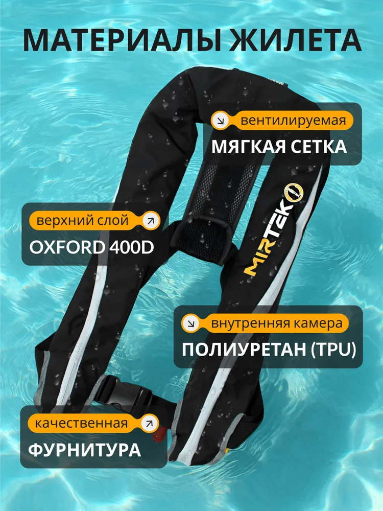 Жилет спасательный надувной Mirtek с автоматической и ручной системой активации