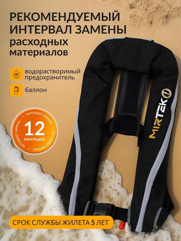 Жилет спасательный надувной Mirtek автомат (+ручной режим) черный