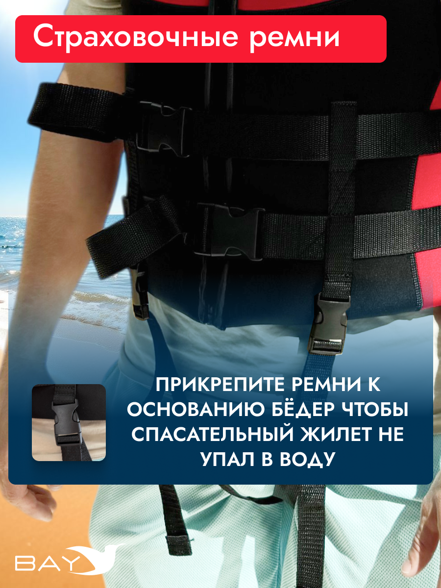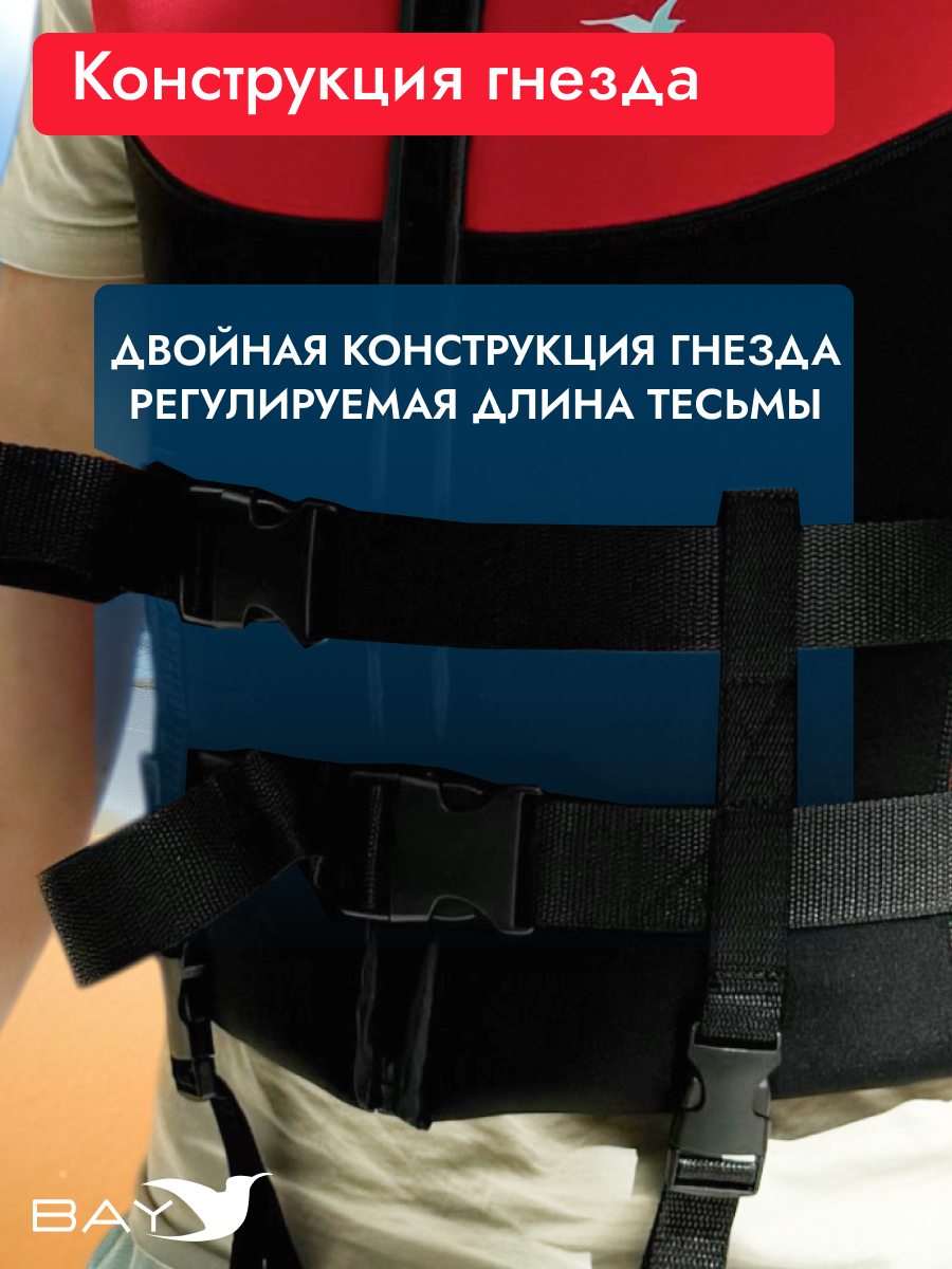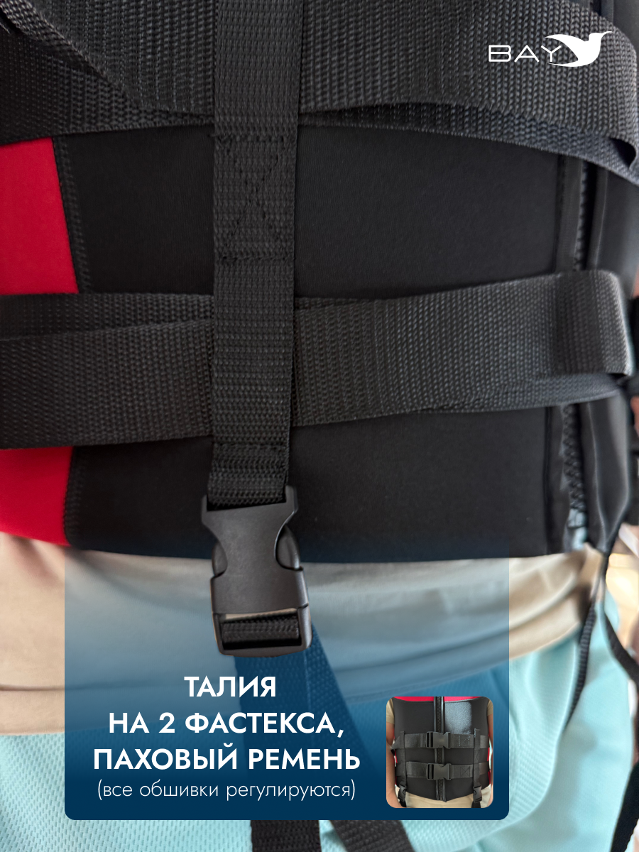 - Функция спасения – усиленная стропа на спине для быстрого подъема из воды