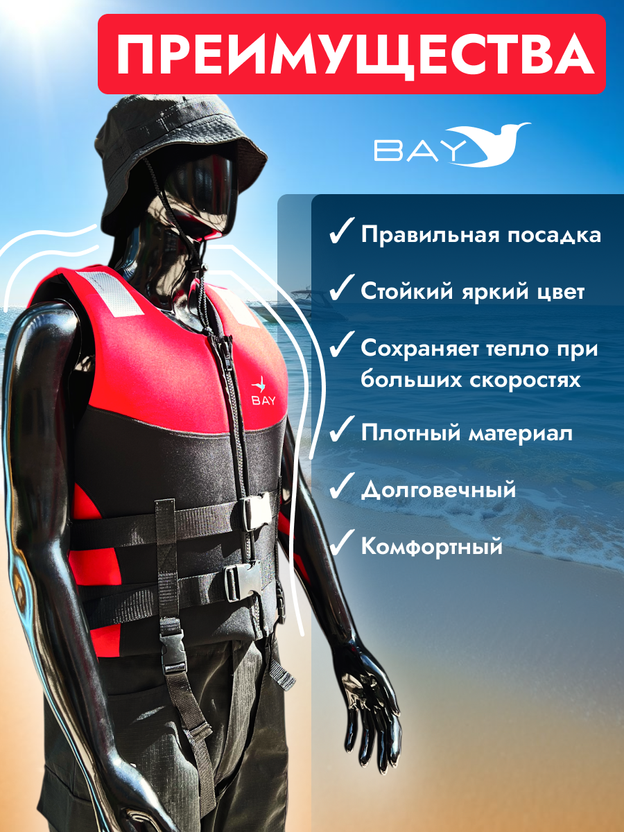 Неопреновый спасательный жилет – необходимое средство безопасности для всех, кто проводит время на воде. Соответствует основным требованиям по плавучести и обеспечивает надежную защиту в различных условиях эксплуатации.