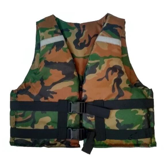 Страховочный жилет для взрослых. Конструкция жилета позволяет поддерживать человека на поверхности воды. Подходит как для туристических водных прогулок, так и для рыбалки или спортивных тренировок. Изготавливается из современных синтетических тканей с влагозащитным покрытием. Имеет Камуфляжный окрас и фотоотражающие элементы.