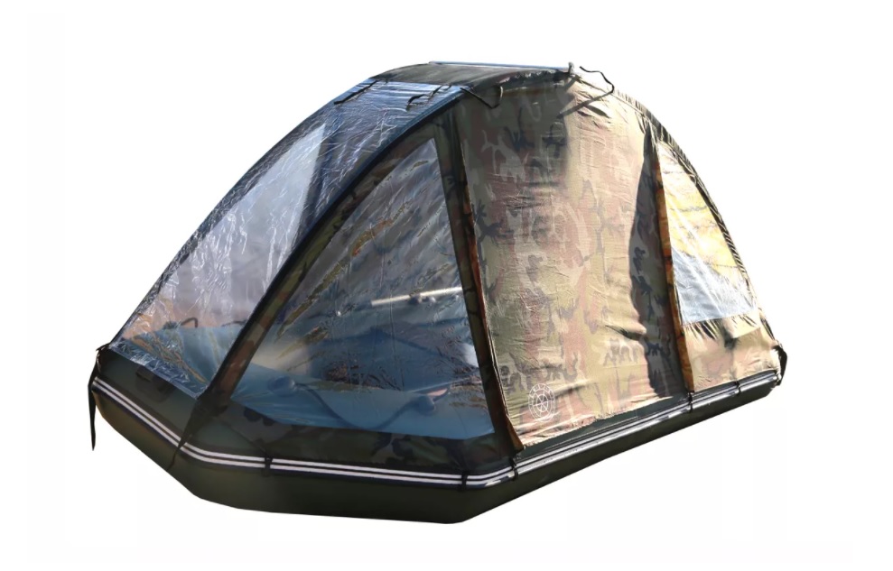 Тент на моторную лодку, крепиться на привальный брус лодки с помощью крючков, при отсутствии бруса крепиться к держателям тента. Конструкция тента позволяет поставить мотор и отрегулировать его по высоте. Натянутая ткань формирует полностью или частично рабочую зону. Тент дополнен замками и липучками, которые позволяют регулировать уровень обзора и рыбачить или охотиться в любую погоду. Ткань Tafetta 210T PU 3000 Rip Stop, швы проклеены и защищены от влаги. Каркас Фиберглас. Диаметр 9мм.