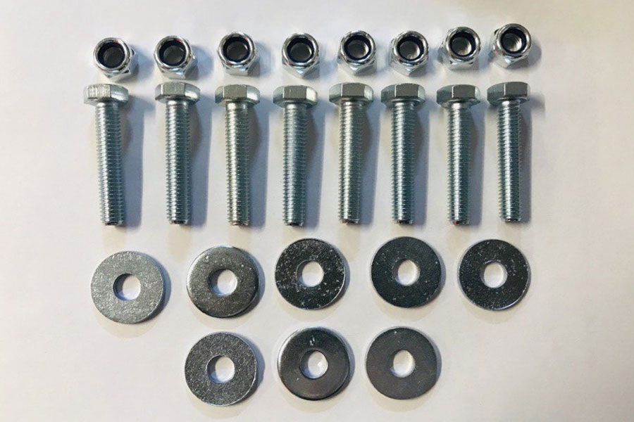 В комплект входят: 8 болтов М8, 8 гаек М8 и 8 шайб.