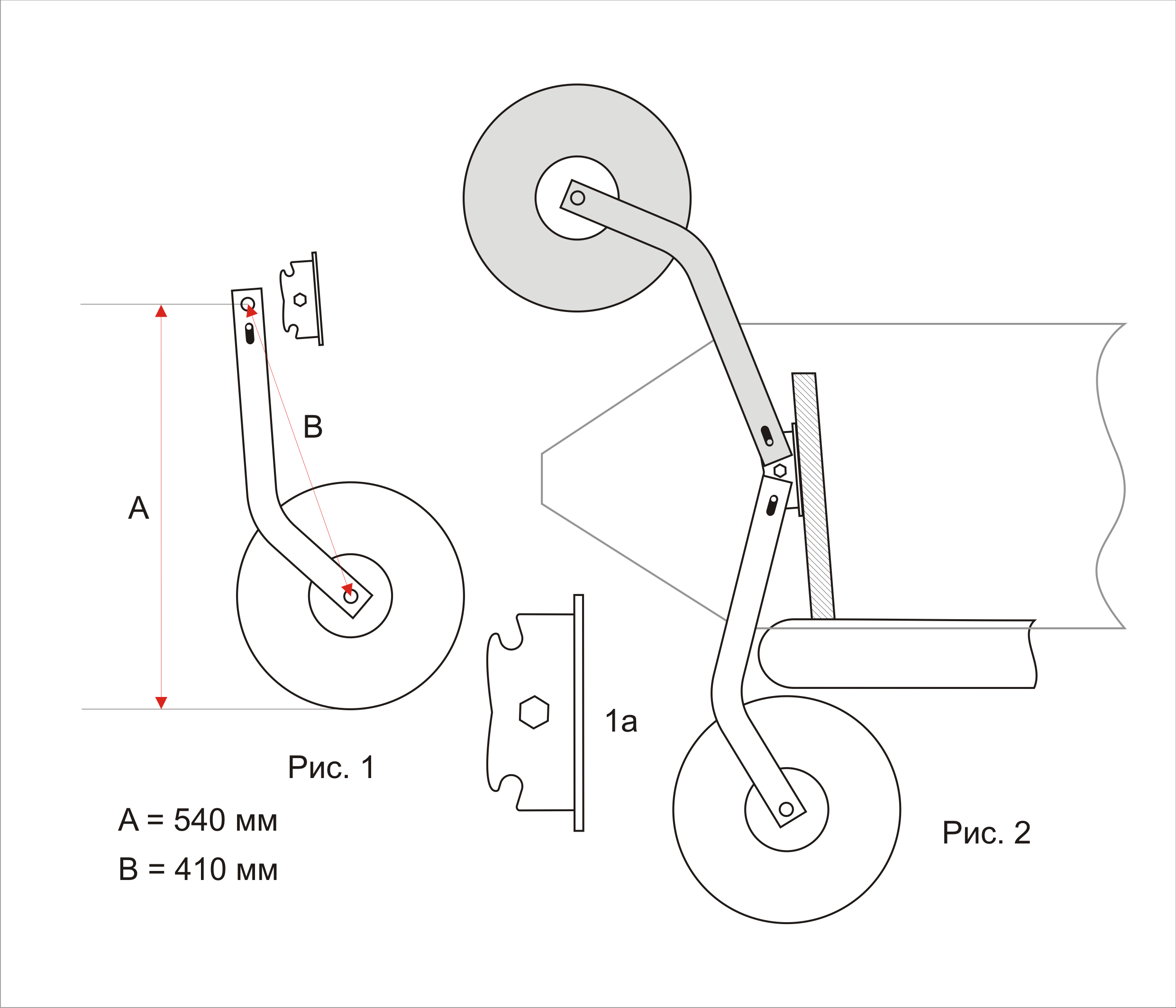 Транцевые колеса-шасси для лодок НДНД с верхними брызговиками (модель 211А) разработаны для лодок с дном низкого давления типа «Гладиатор» и других лодок НДНД с верхними брызговиками. Оба паза крепежной площадки находятся под углом. Таким образом стойки в верхнем положении отводятся чуть назад и не пересекаются с брызговиками.