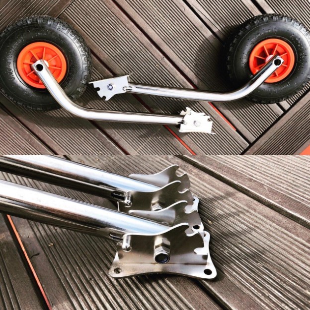 Транцевые шасси-колёса предназначены для облегчения спуска лодки на воду и вытаскивания её из воды. Выберите для вашей лодки подходящую модель с учетом особенностей днища лодки, её длины и материала. Все шасси снабжены камерными колесами с капроновой ступицей диаметром 260 мм. Отсутствие ржавеющего подшипника – большой плюс при постоянном контакте изделия с водой.