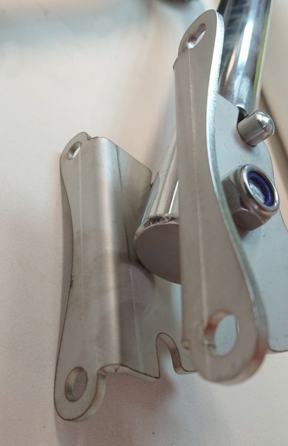Транцевые перекидные колеса-шасси для лодок НДНД (модель 211 Комбо Лайт) разработаны для лодок с дном низкого давления типа «Х-River», «Флагман», «Солар», «Компас», «АЭРО», «Ротан» и др. Состоят из двух нержавеющих угловых деталей площадки (толщина 3 мм, как в обычных) и нержавеющей стойки. Имеют те же параметры, что и НДНД Перекидные арт. 211К. В верхней части площадок крепления расположены два паза - прямой и под углом 45 градусов. Это делает модель Комбо Лайт универсальной - она подойдет для лодок без брызговиков, с брызговиками, а также для лодок с узким транцем, в которых стойки шасси могут мешать манипуляциям с мотором.