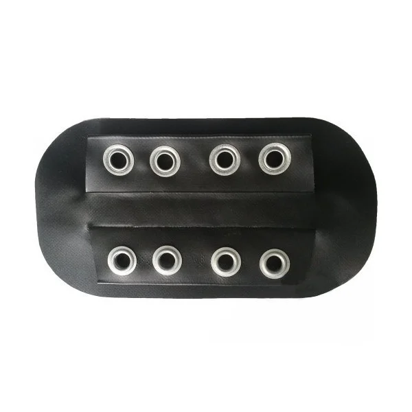 Верхнее крепление транца Барк (бабочка) - это крепежная платформа из ПВХ с металлическими люверсами для крепления навесного транца Барк на баллон гребной лодки. Приклеивается сверху на баллоне лодки, в кормовой ее части.