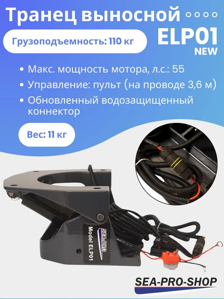 Выносной регулируемый транец SEA-PRO ELP01 предназначен для двигателей мощностью от 15 до 55 л.с. и весом до 110 кг. Может использоваться в пресной воды, как на лодках, так и на катерах.