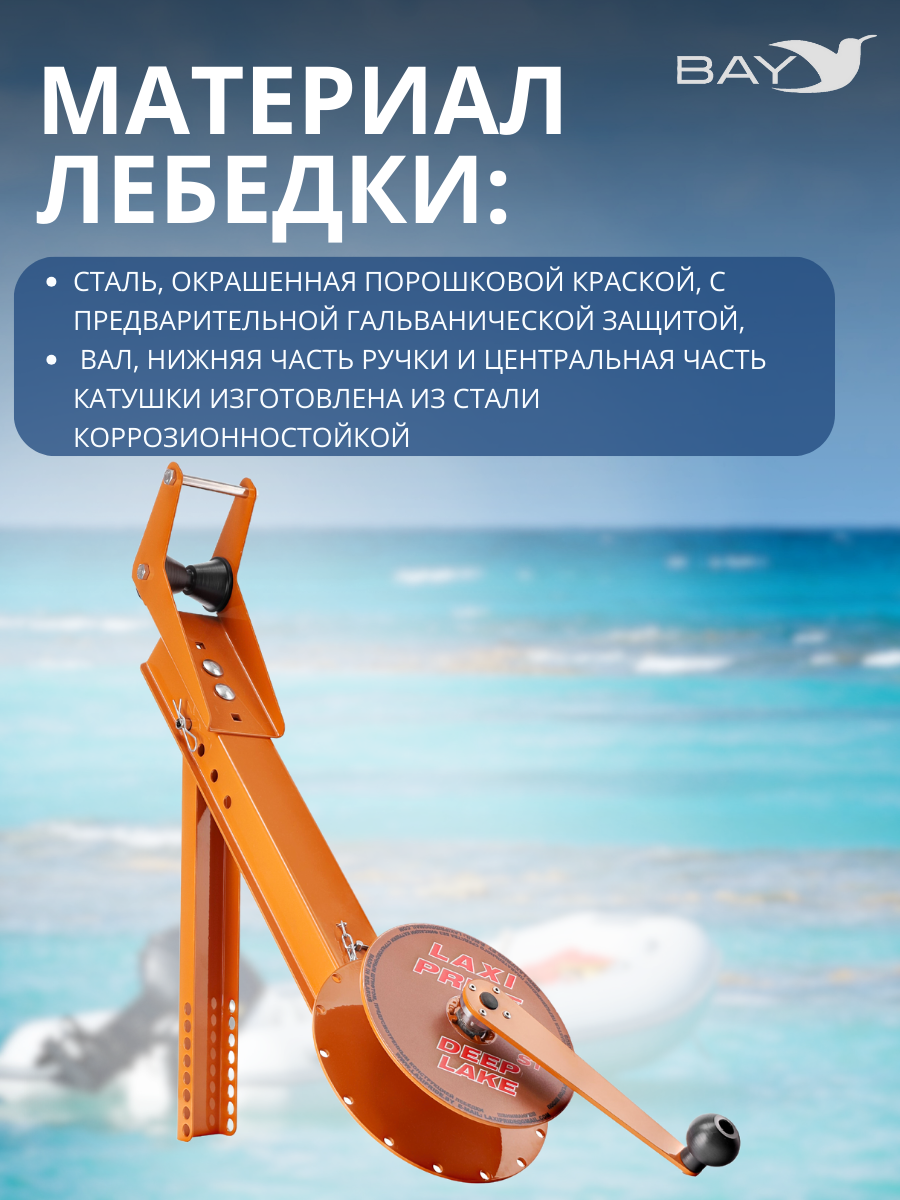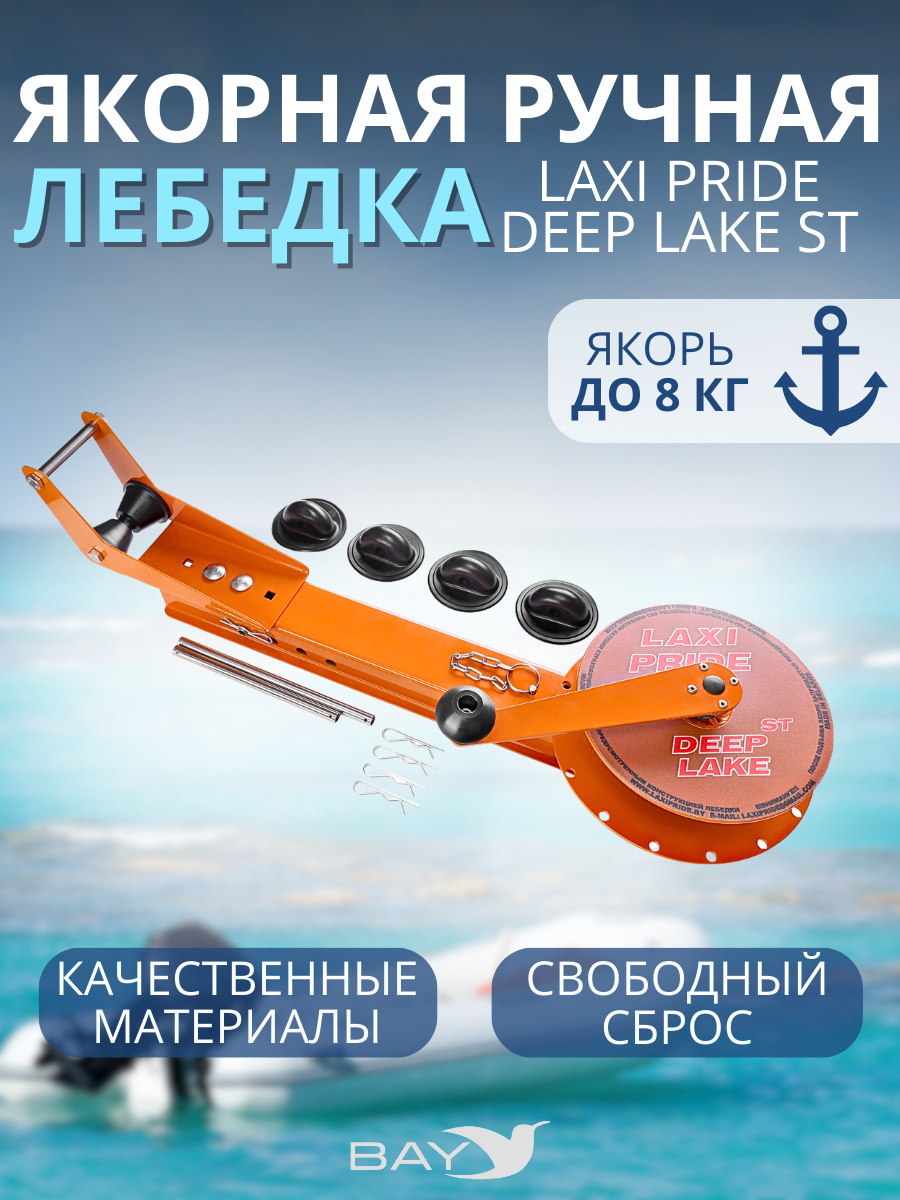 LAXI PRIDE DEEP LAKE ST — это разновидность ручной якорной лебедки для надувных лодок, которая ориентирована на любителей рыбалки на больших глубинах вплоть до 50 метров. Её конструкция позволяет использовать якоря типа кошка или аналогичные с длиной веретена вплоть до 530 мм. Система страховки в виде нержавеющего штифта с подпружиненным шариком, обеспечит надежную, комфортную и безопасную эксплуатацию лебедки при любых условиях.