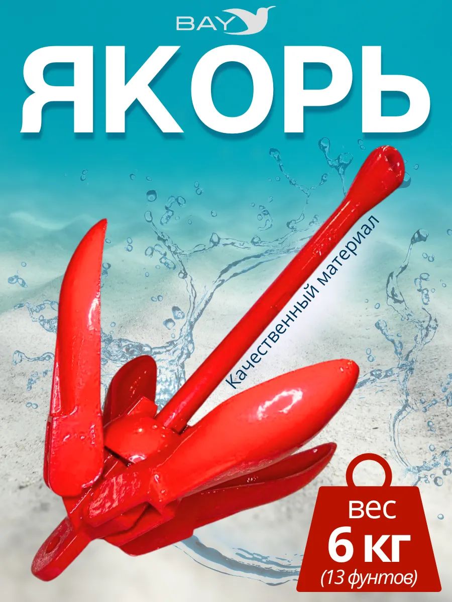 Якорь для лодки ПВХ кошка 6 кг (13 фунтов) красного цвета