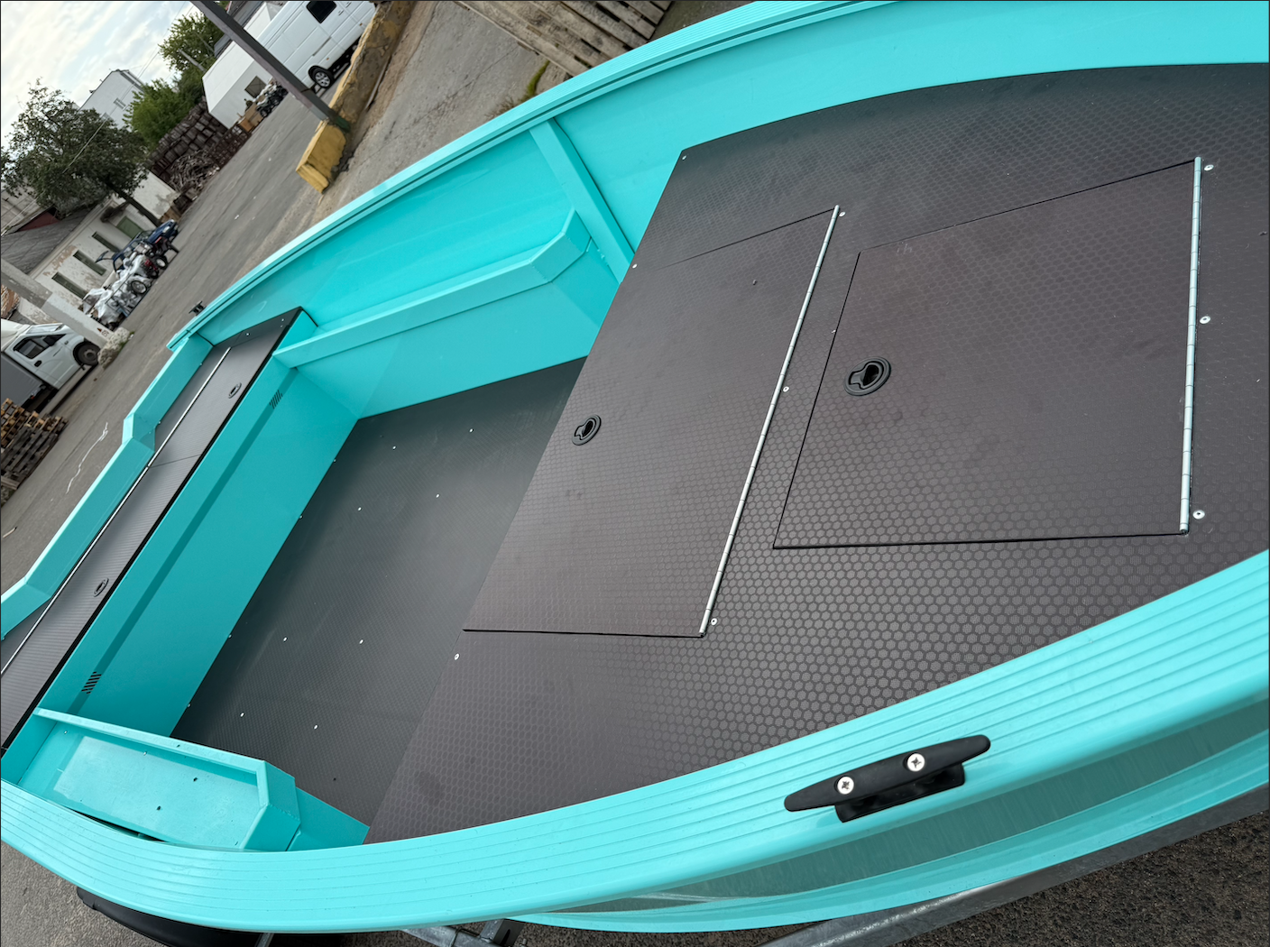 - Прочные конструкции: Цельносварной корпус изготовлен из высококачественного морского прибора марки 5083 H111, что обеспечивает его фиксацию и устойчивость к корпусу. Толщина составляет 3 мм на дне и 2 мм на бортах.