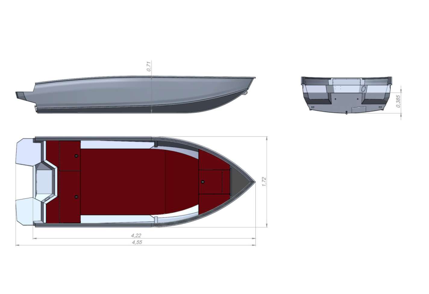 - Оптимальная вместимость и грузоподъемность: Лодка рассчитана на 4 человека или груз до 370 кг (в зависимости от условий эксплуатации).