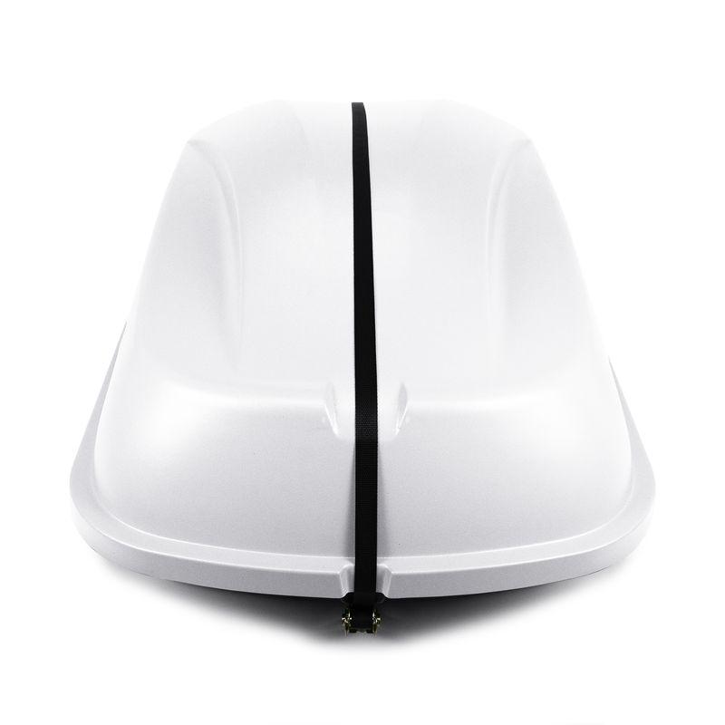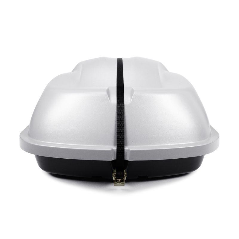 Он отлично подойдет тем, кто хочет значительно расширить ассортимент вещей, перевозимых в авто. Данный автобокс компактного размера (1590x79x43) способен вместить в себя до 50 кг груза объемом 380 литров. Запирание бокса осуществляется с помощью стяжного ремня с храповым механизмом. Крышка бокса полностью откидная, позволяющая сделать легкодоступным весь внутренний объем.