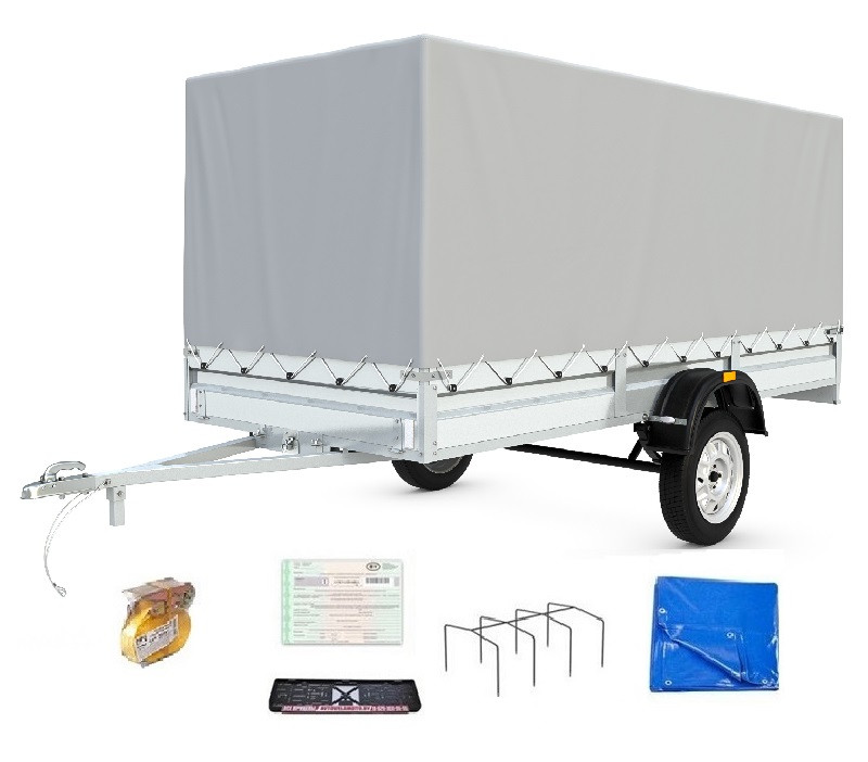 Почему мы с такой уверенностью можем советовать вам данную технику? Эта модель предназначена для использования с легковым автотранспортом и оснащена соединением через снимающееся треугольное дышло. В базовой комплектации к прицепу прилагается плотный тент для защиты багажа на время стоянки и перевозки. Поэтому вы можете не переживать за подмоченный или запачканный груз. А от ухабов на дороге защитят надежные рессоры.
