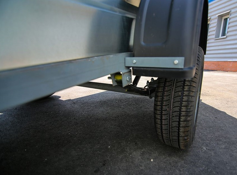 - Ровный ход. Прицеп держит дорогу как пустой, так и в нагруженном состоянии. Это достигается за счет подвески с резиновыми подрессорниками, которые, как и амортизаторы, ступицы, и другие сложные узлы сконструированы по чертежам для серийных автомобилей. Эти элементы прошли сотни испытаний на специальных полигонах. В проушинах у рессор использованы резиновые втулки. Телескопические амортизаторы действуют односторонне и направлено, зависимая рессорная подвеска включает балку и полуэллиптические рессоры, а также гидравлические амортизаторы. Именно поэтому подвеска крайне вынослива, пригодна к ремонту и экономичнее в обслуживании, а ход прицепа более плавный и мягкий