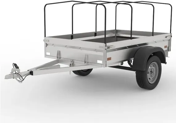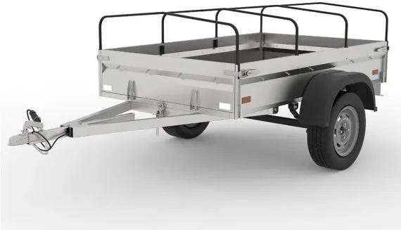 - Борта выполнены из оцинкованного стального листа 1 мм толщиной с усилением ребром жёсткости. Задний борт открываются вровень с полом прицепа.
