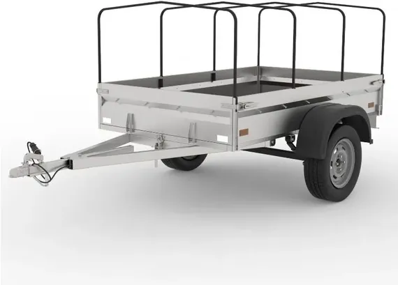Прицеп бортовой одноосный с самосвальной системой и удлинителем дышла. Предназначен для перевозки грузов общего назначения и мототехники.