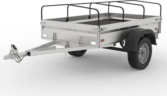 - Борта выполнены из оцинкованного стального листа 1 мм толщиной с усилением ребром жёсткости. Задний борт открываются вровень с полом прицепа.
