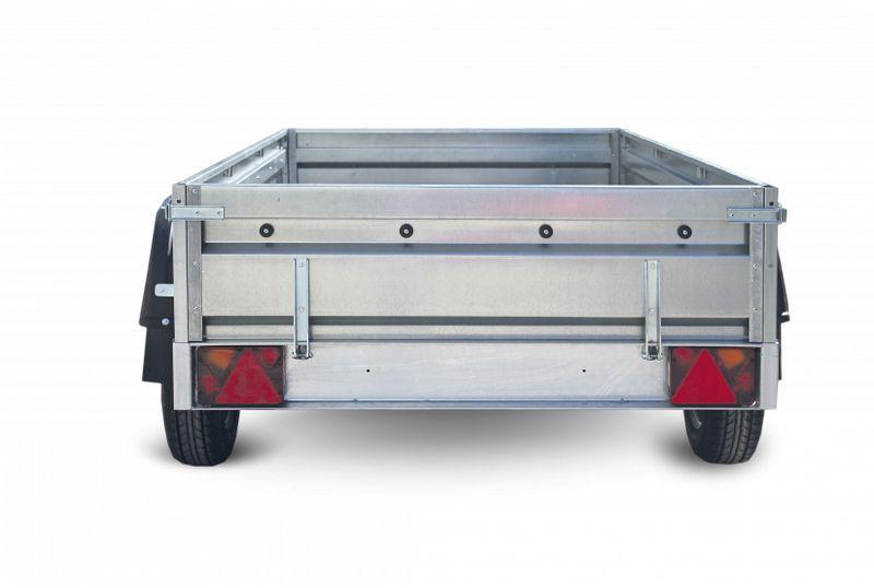 Прицепы имеют улучшенную конструкцию: сварная рама покрывается методом горячего цинкования, борта прицепов выполнены из оцинкованной стали толщиной 1.0 мм, на борта устанавливаются угловые стойки, днище из влагоустойчивой фанеры толщиной 6 или 9 мм.