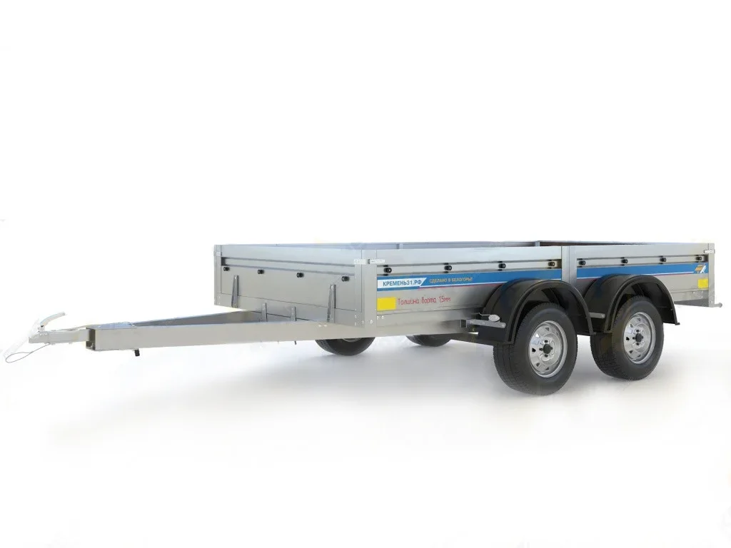 Прицеп поставляется с колесами. Дополнительные аксессуары, такие как тент, опорное колесо и усиленные борта, приобретаются отдельно.