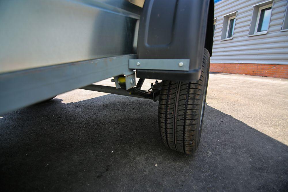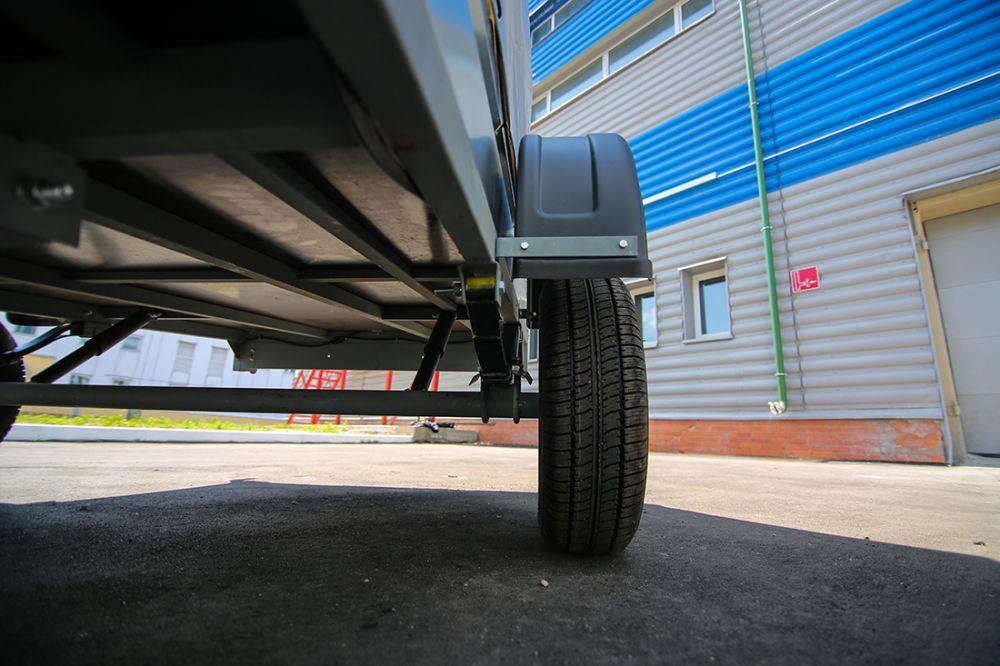 - Ровный ход. Прицеп держит дорогу как пустой, так и в нагруженном состоянии. Это достигается за счет подвески с резиновыми подрессорниками, которые, как и амортизаторы, ступицы, и другие сложные узлы сконструированы по чертежам для серийных автомобилей. Эти элементы прошли сотни испытаний на специальных полигонах. В проушинах у рессор использованы резиновые втулки. Телескопические амортизаторы действуют односторонне и направлено, зависимая рессорная подвеска включает балку и полуэллиптические рессоры, а также гидравлические амортизаторы. Именно поэтому подвеска крайне вынослива, пригодна к ремонту и экономичнее в обслуживании, а ход прицепа более плавный и мягкий.