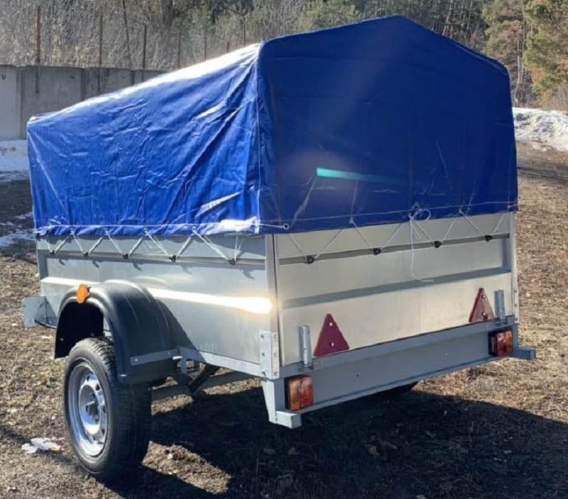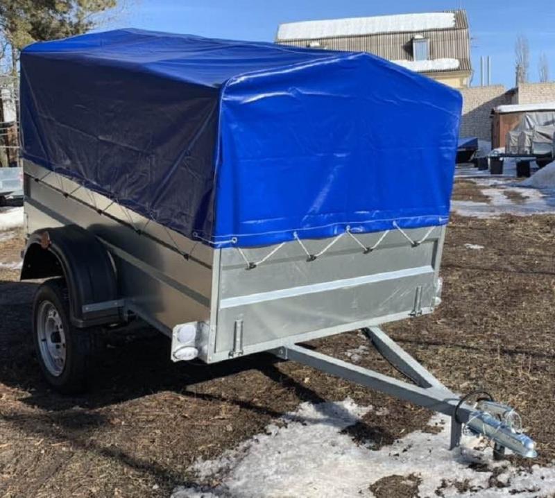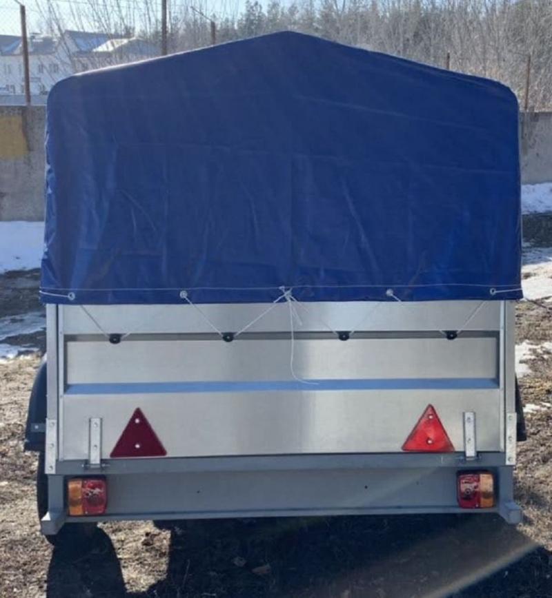 - Прицеп оборудован невысоким металлическим каркасом для крепления тента.