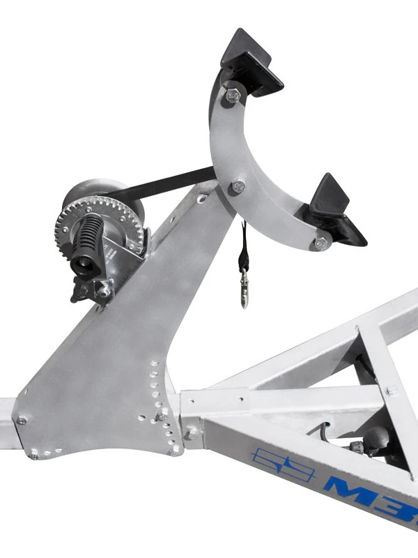 - Мультирегулируемый носовой упор с лебёдкой имеет три варианта настройки. Регулируемый передвижной кронштейн может быть установлен в любом месте дышла под необходимым наклоном. Двойной поворотный носовой упор распределяет горизонтальную нагрузку и снижает давление на носовую часть судна. Лебёдка облегчает погрузку судна на прицеп и страхует его при спуске на воду.
